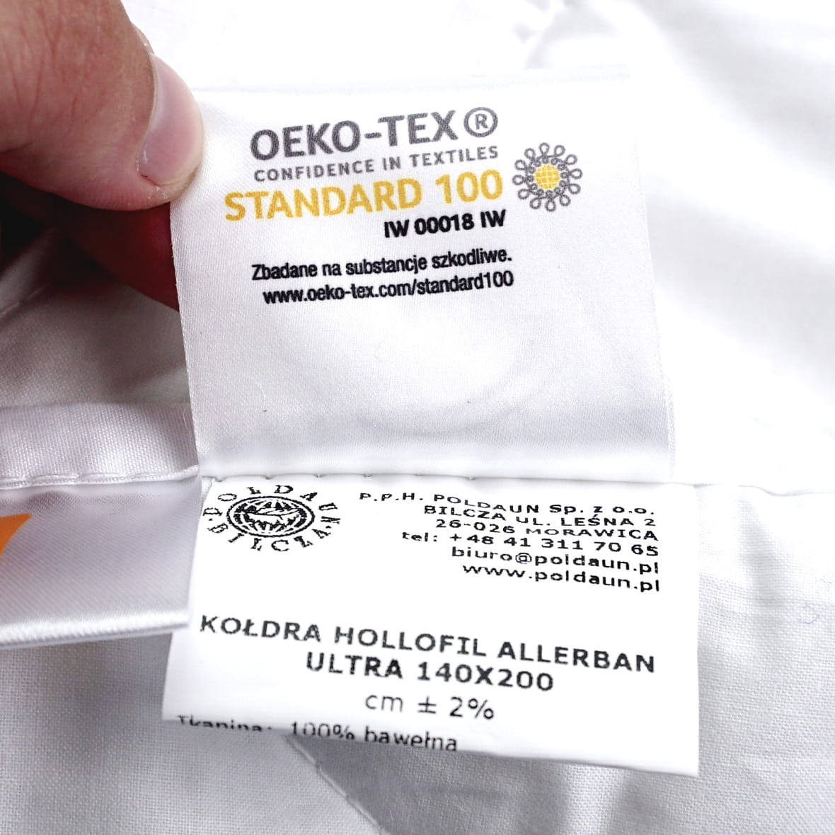 Atesty dają pewność, że kołdra nie zawiera substancji niebezpiecznych, mogących uczulać i powodować dyskomfort podczas snu.