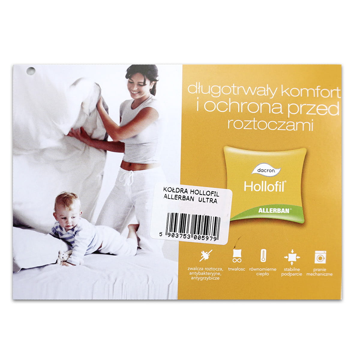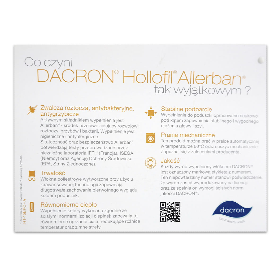 Allerban jest stałą częścią włókna - nieustannie działa na kołdrę nawet po wielu praniach