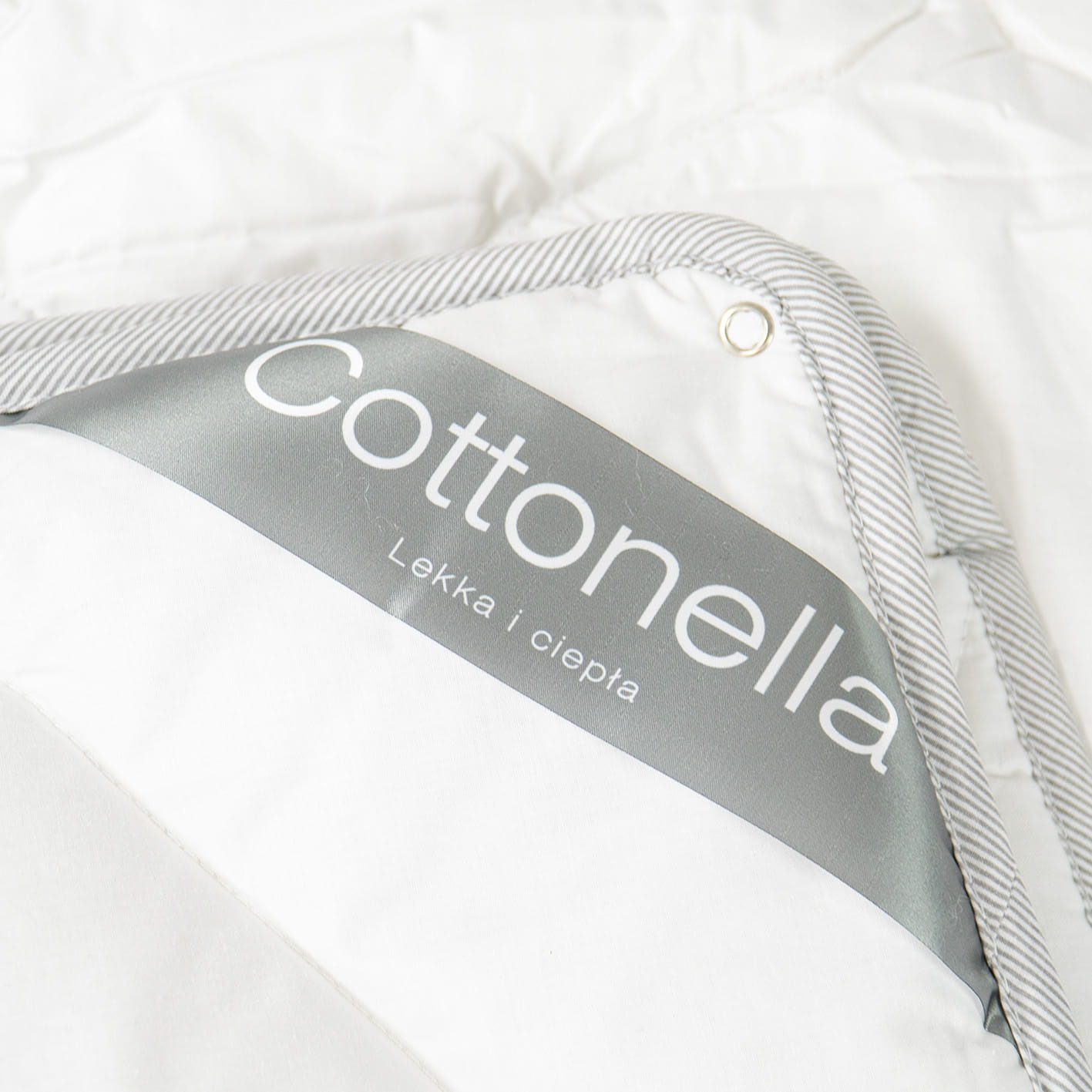 Wypełnienie kołdry cottonella to włókna poliestrowe HCS. Ten typ wypełnienia wykonany jest z syntetycznych włókien, które nie przyciągają kurzu i roztoczy, dzięki temu kołdra nie wywołuje alergii.
