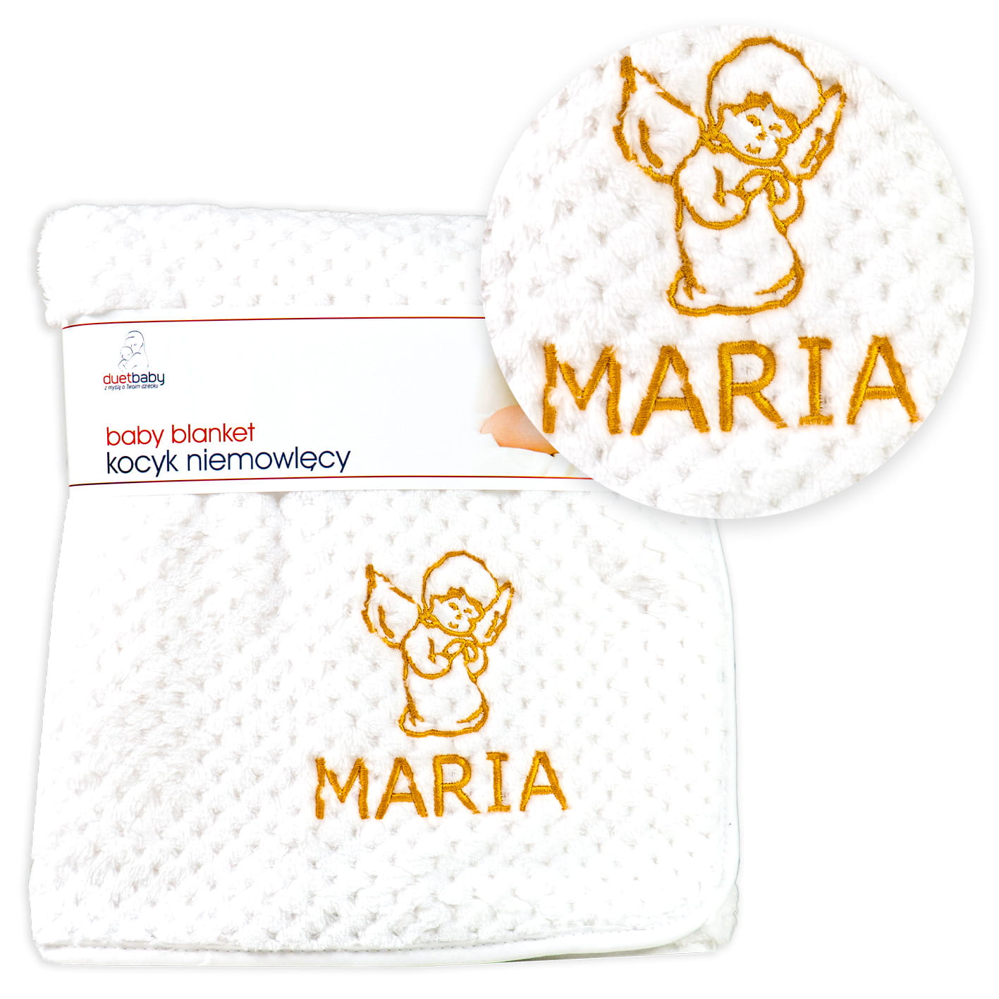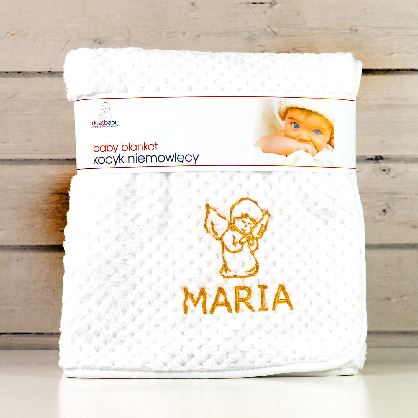 Koc do chrztu soft 80x90 cm anioł złoty imię
