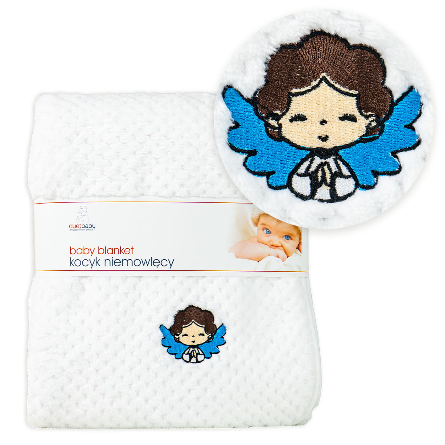Koc do chrztu soft 80x90 cm bialy anioł niebieski