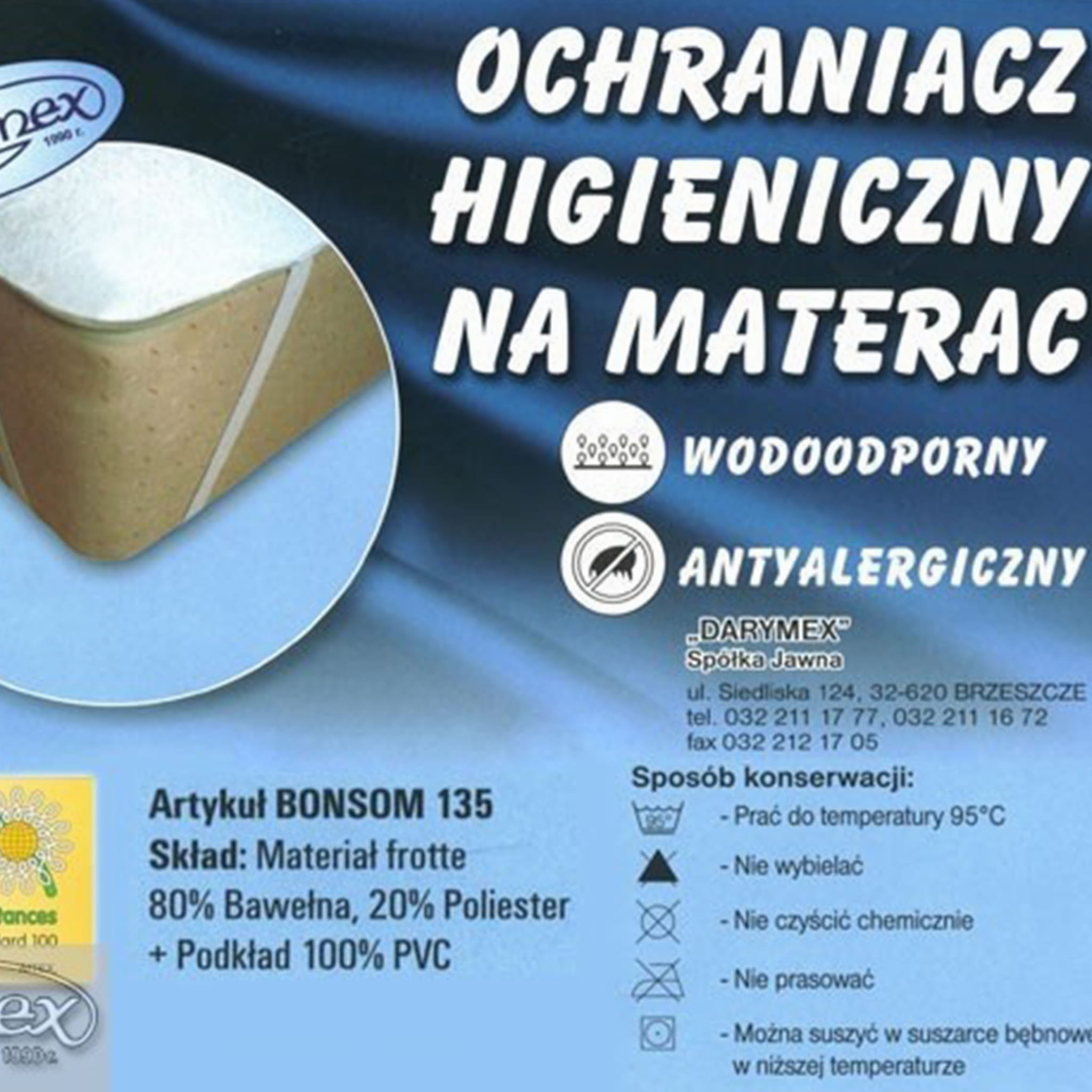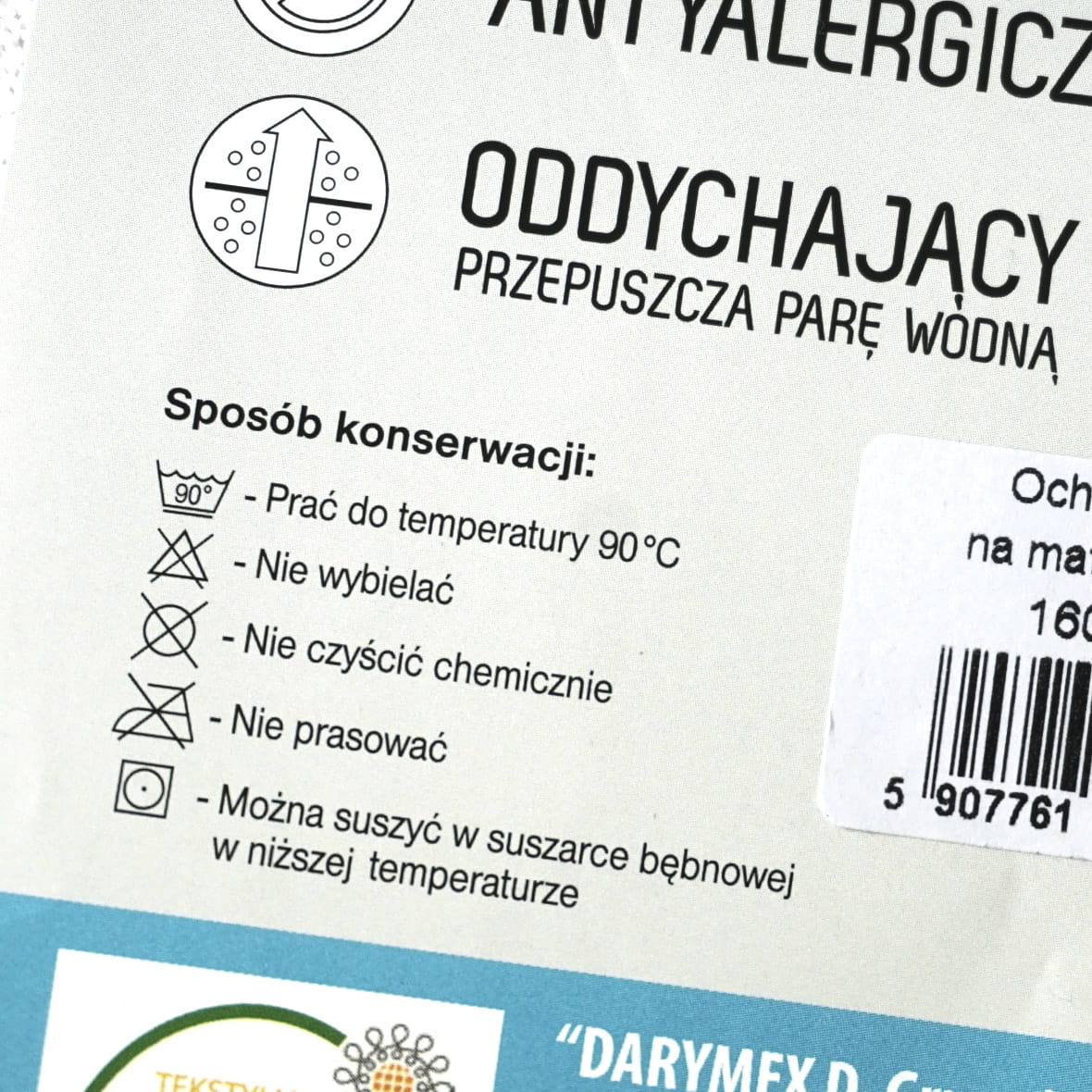 Ochraniacz nieprzemakalny posiada Certyfikat Tekstylia Godne Zaufania - zbadane na substancje szkodliwe - co zapewnia pełną antyalergiczność i bezpieczeństwo użytkowania. W całości został uszyty przez polską firmę DARYMEX, renomowanego producenta artykułów pościelowych - co daje Ci pewność najwyższej jakości i wysokiej trwałości.