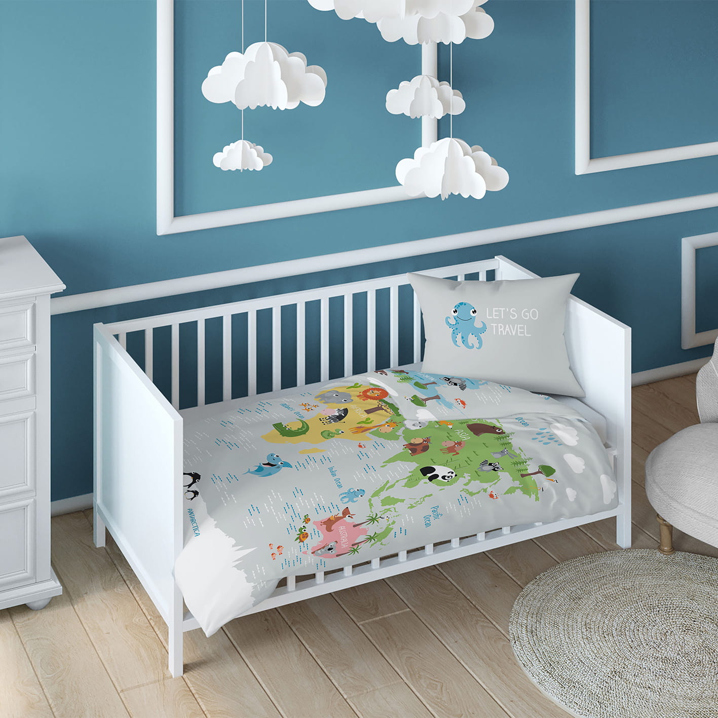 POŚCIEL 90x120 cm mapa szara