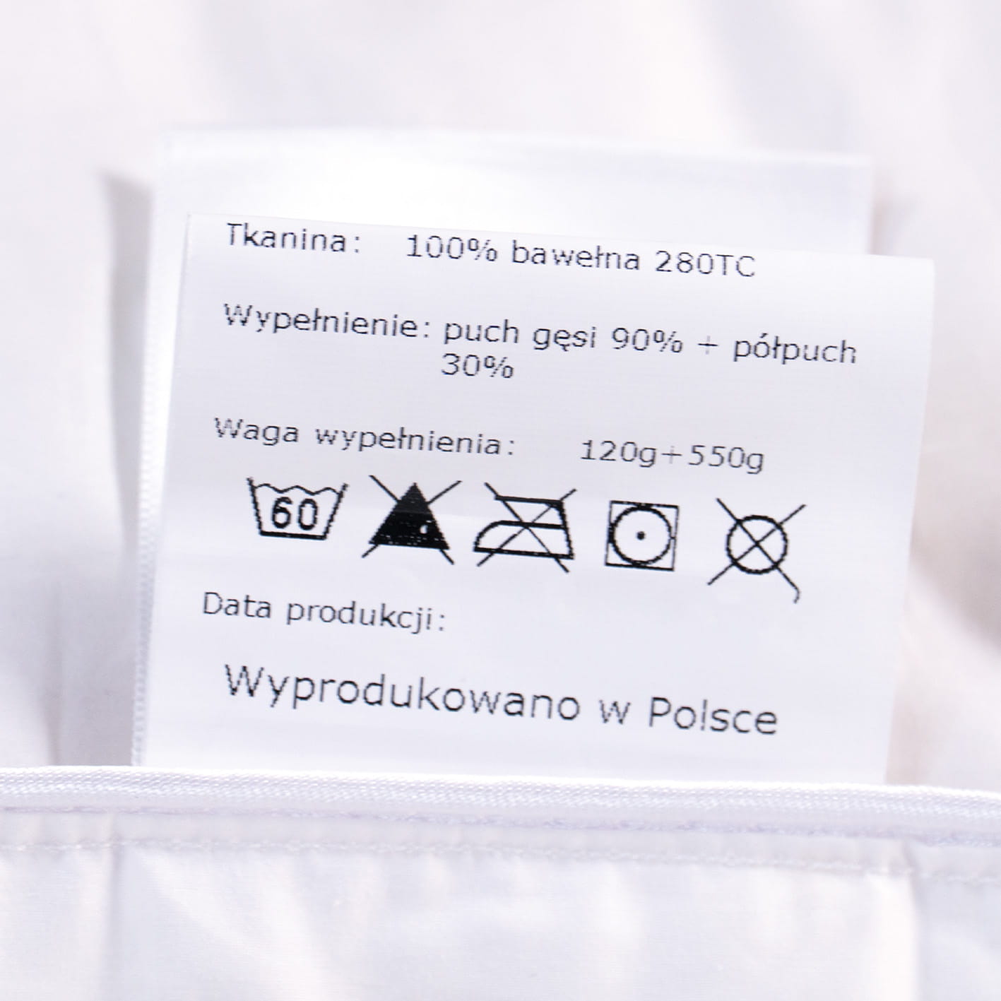 - Wypełnienie komory wewnętrznej: półpuch gęsi 30%