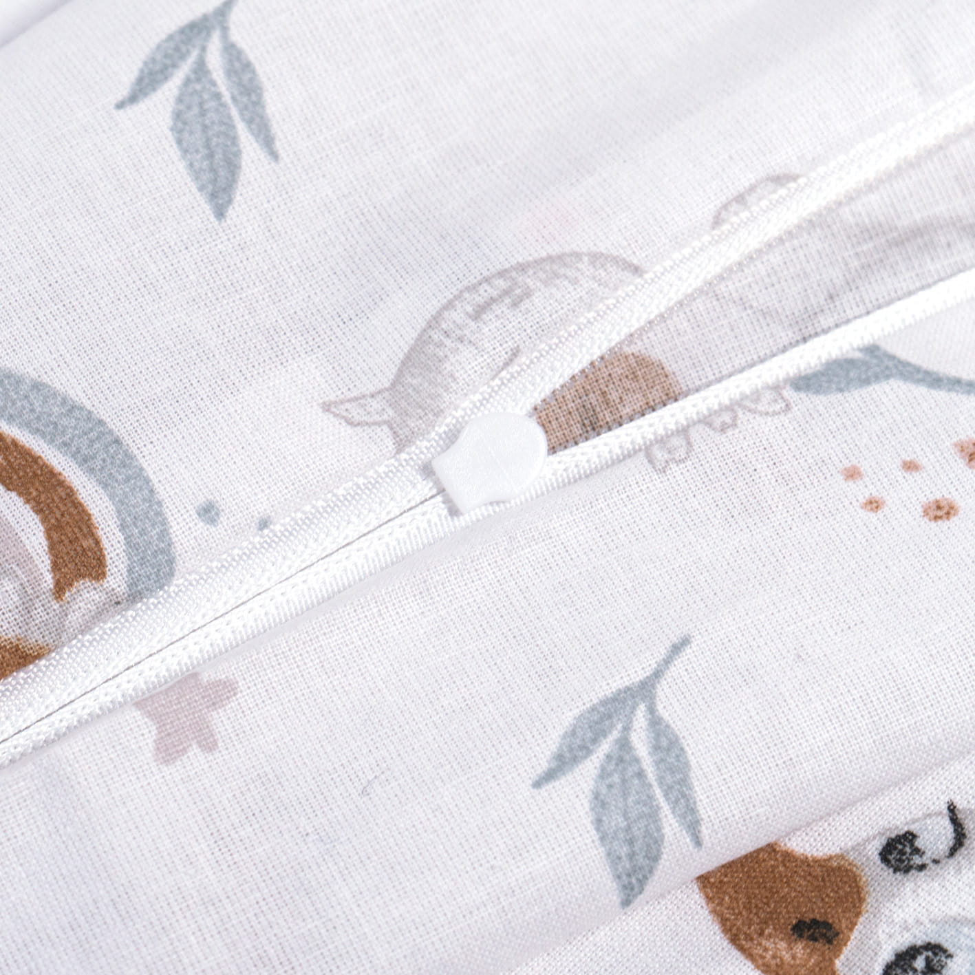Poszewka doskonale pasuje także na niskie poduszki, dedykowane od pierwszych dni życia dziecka. Uniwersalny rozmiar to także bezproblemowa zmiana rozmiaru poduszki, kiedy dziecko rośnie. Pościel więc posłuży długi okres czasu.