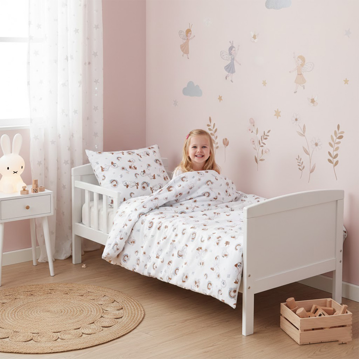 Komplet posiada poszewkę na poduszkę. W poszewce idealnie mieści się puszysta poduszka dedykowana dla dzieci powyżej 3 roku życia.
