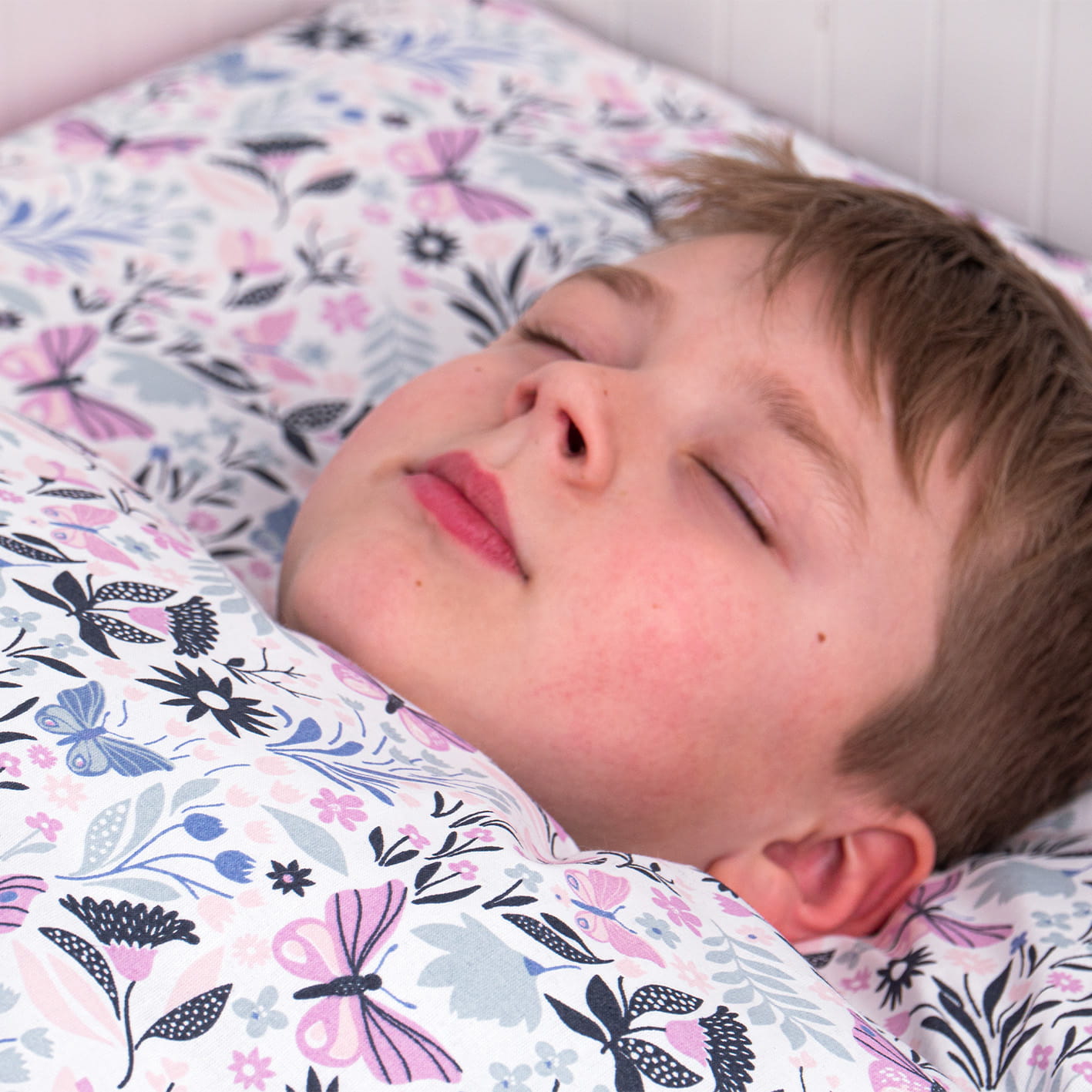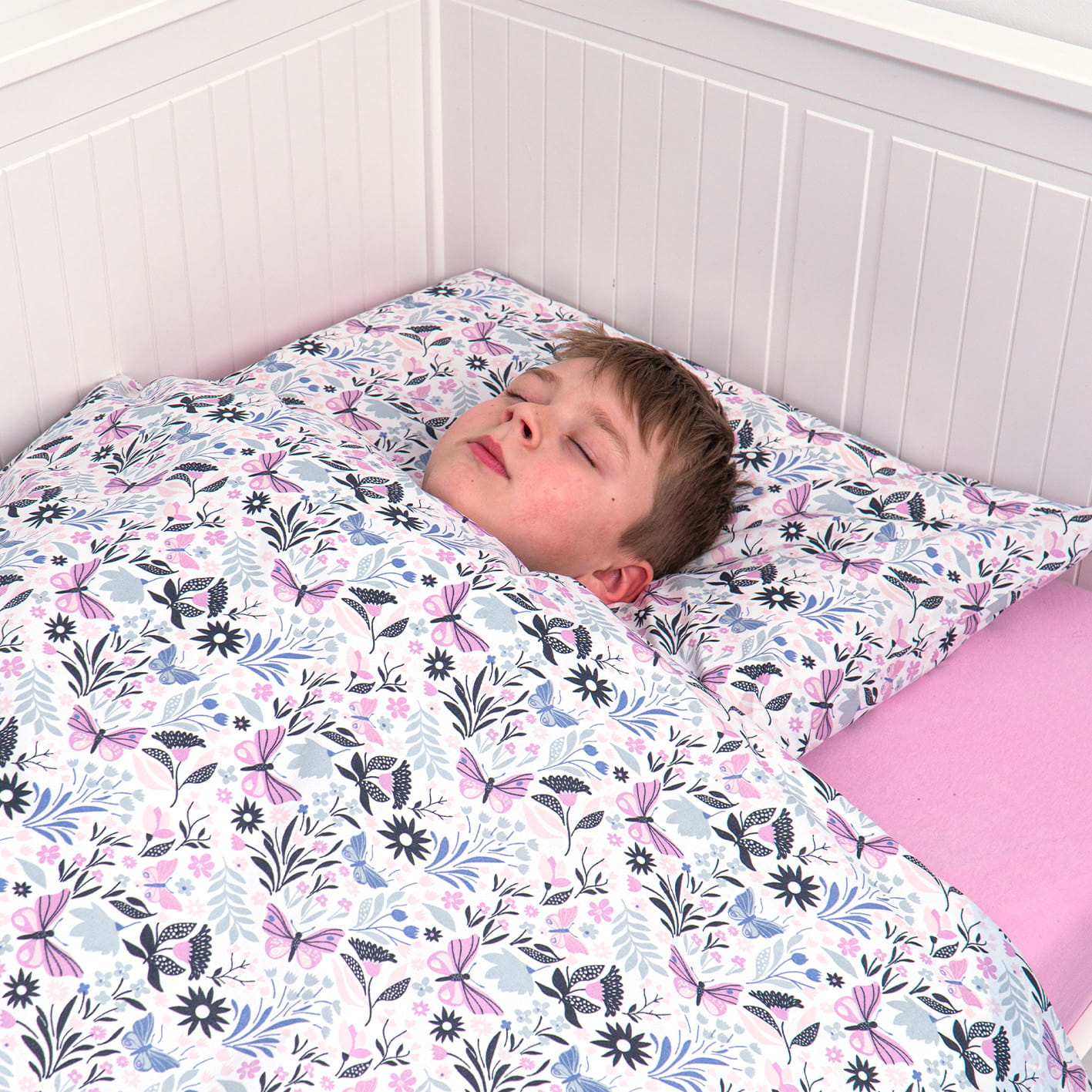 Poszewka doskonale pasuje także na niskie poduszki, dedykowane od pierwszych dni życia dziecka. Uniwersalny rozmiar to także bezproblemowa zmiana rozmiaru poduszki, kiedy dziecko rośnie. Pościel więc posłuży długi okres czasu.