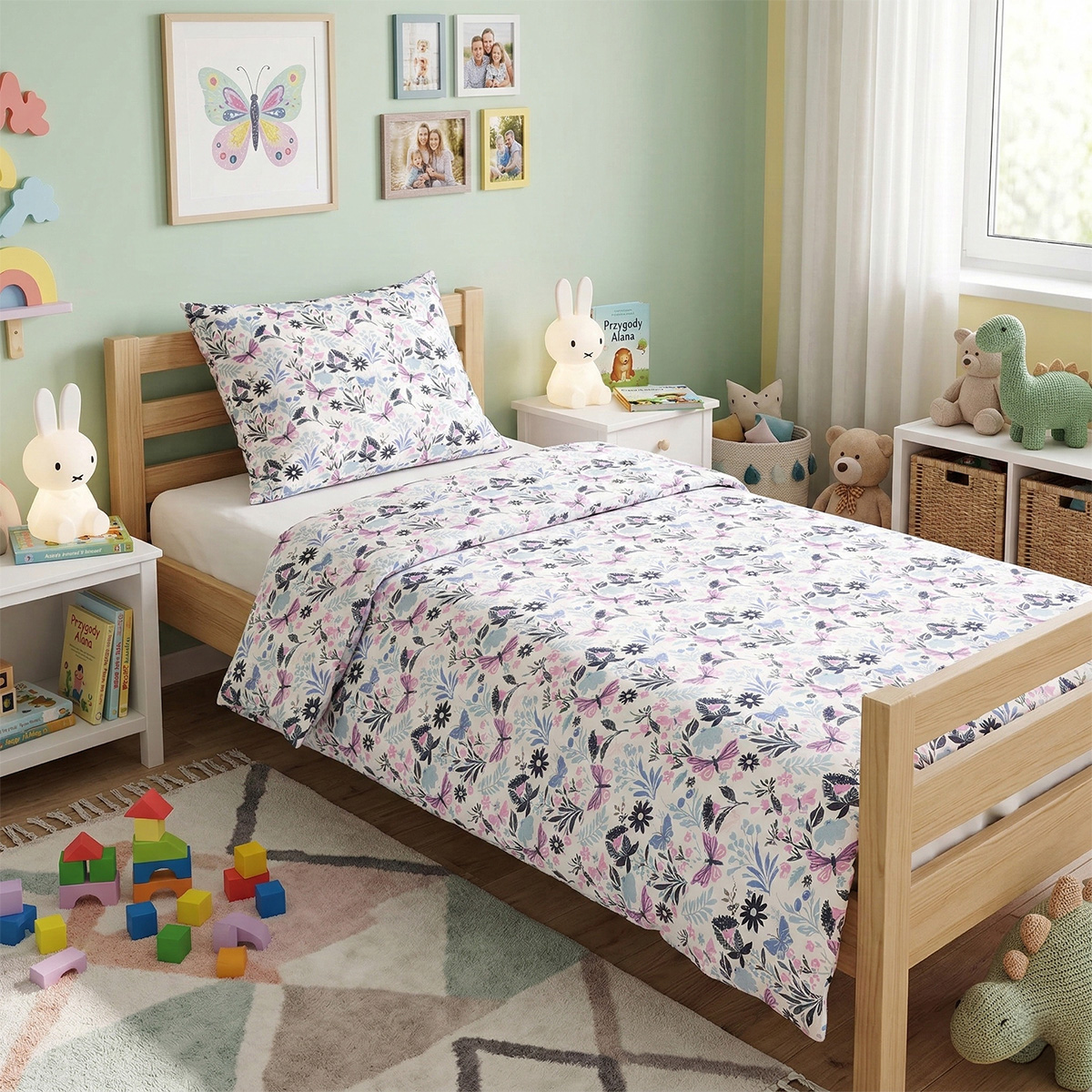 Pościel posiada żywy, bardzo trwały nadruk, który ożywi każde wnętrze dziecięcego pokoju.