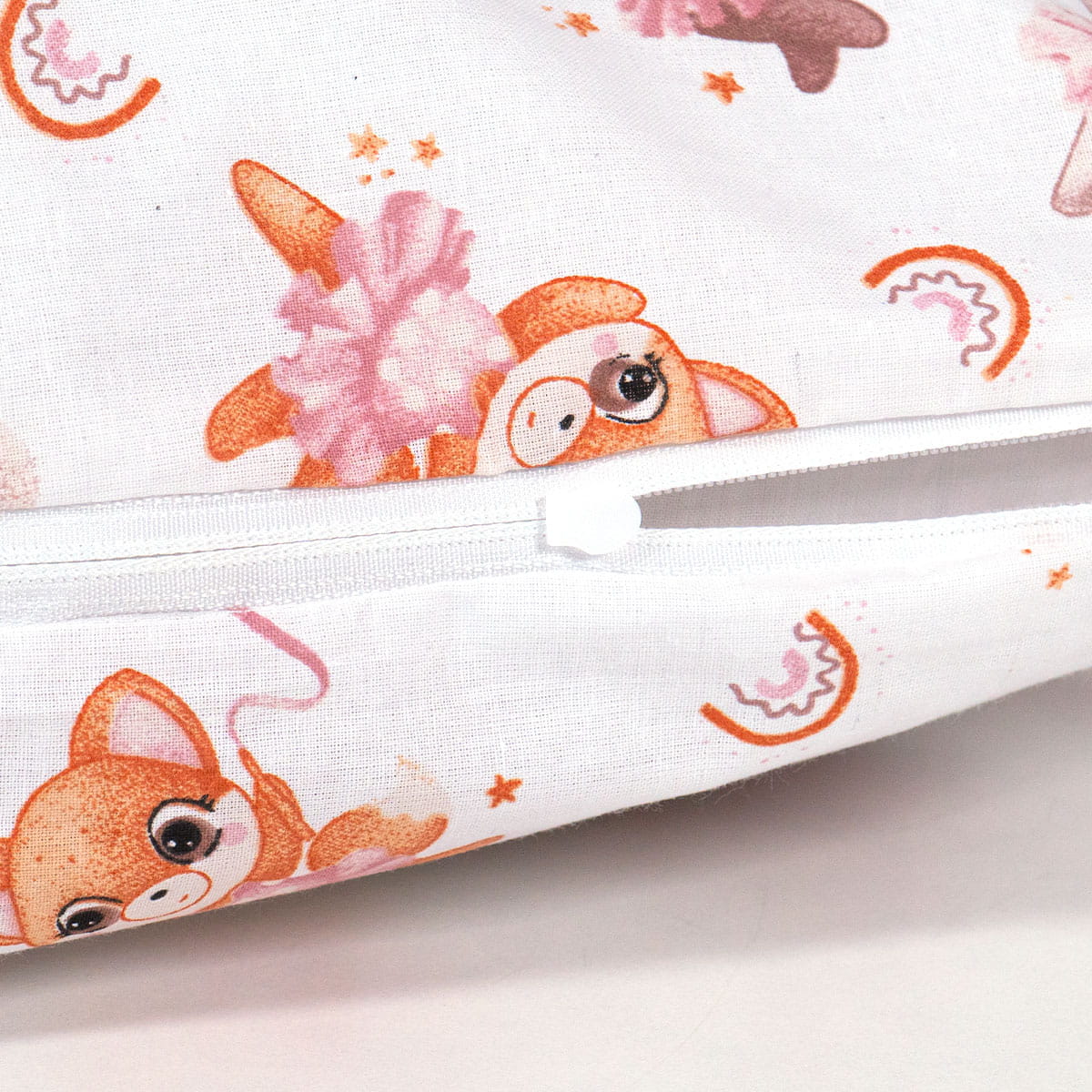 Poszewki wykonane są w 100% z wysokogatunkowej bawełny, a nadruk na nich jest bardzo dobrej jakości i wysokiej trwałości. Poszewka jest miłym akcentem, który ożywi każdy dziecięcy pokój. Skład z czystej bawełny zapewnia doskonałą wentylację co pozwala na komfortowy, zdrowy sen.