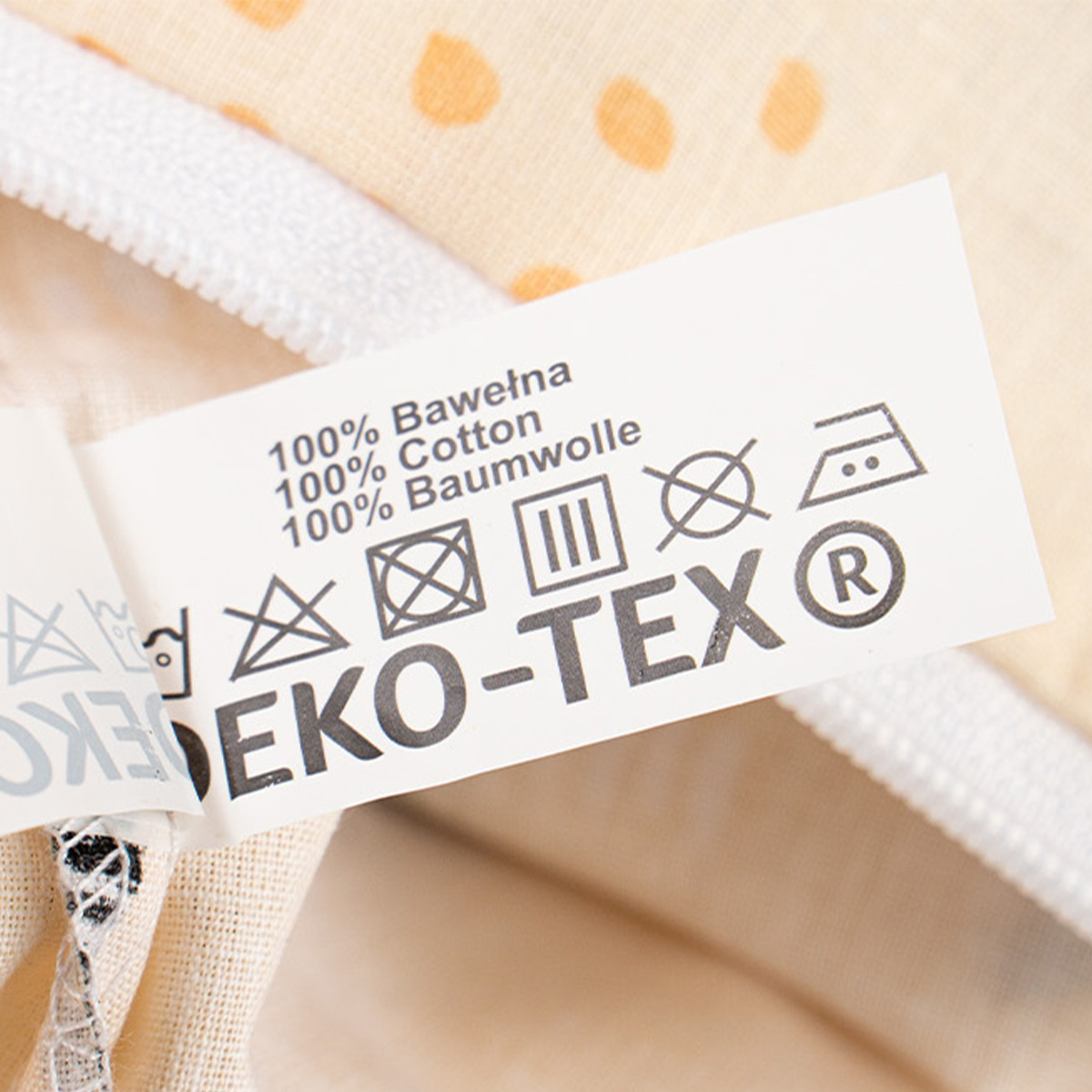 Tkanina, z której została uszyta poszewka posiada Certyfikat Tekstylia Godne Zaufania OEKO TEX STANDARD, co zapewnia najwyższą jakość tkaniny i bezpieczeństwo użytkowania nawet przez najmniejsze dzieci.