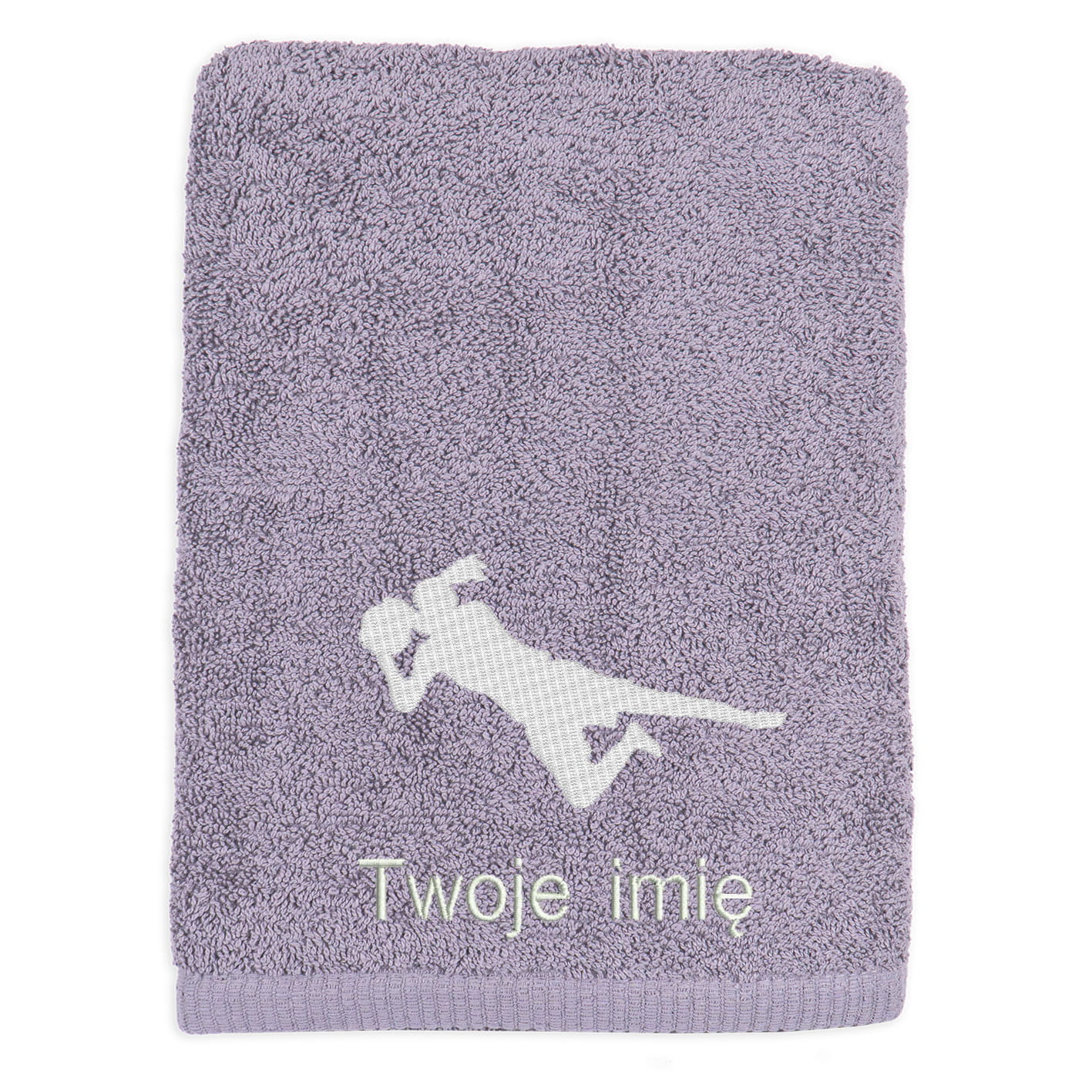Na ręczniku pod grafiką możemy wyhaftować imię lub inne dwa słowa - od Ciebie zależy jaki tekst haftu będzie najlepszy :)