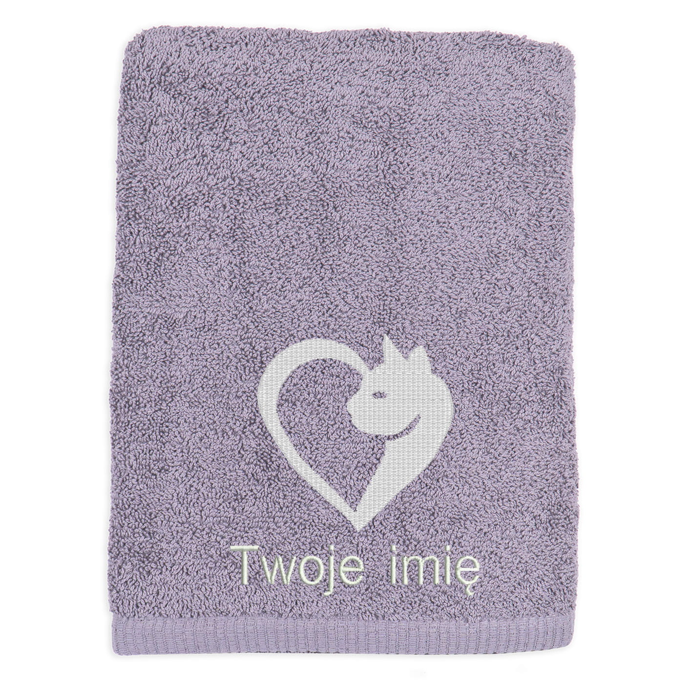 Na ręczniku pod grafiką możemy wyhaftować imię lub inne dwa słowa - od Ciebie zależy jaki tekst haftu będzie najlepszy :)