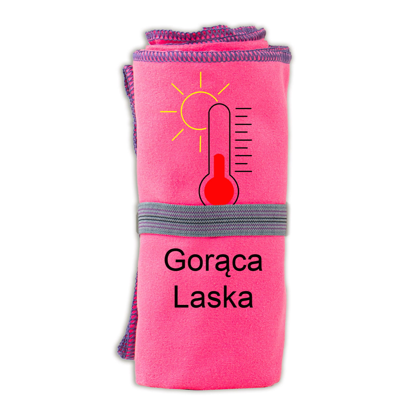 Ręcznik posiada wszytą praktyczną gumkę, która pozwala zarówno na zwinięcie ręcznika w rulon zajmujący bardzo mało miejsca, zwinięcie w "kulkę" mokrego ręcznika, czy na powieszenie ręcznika w dowolnym miejscu.