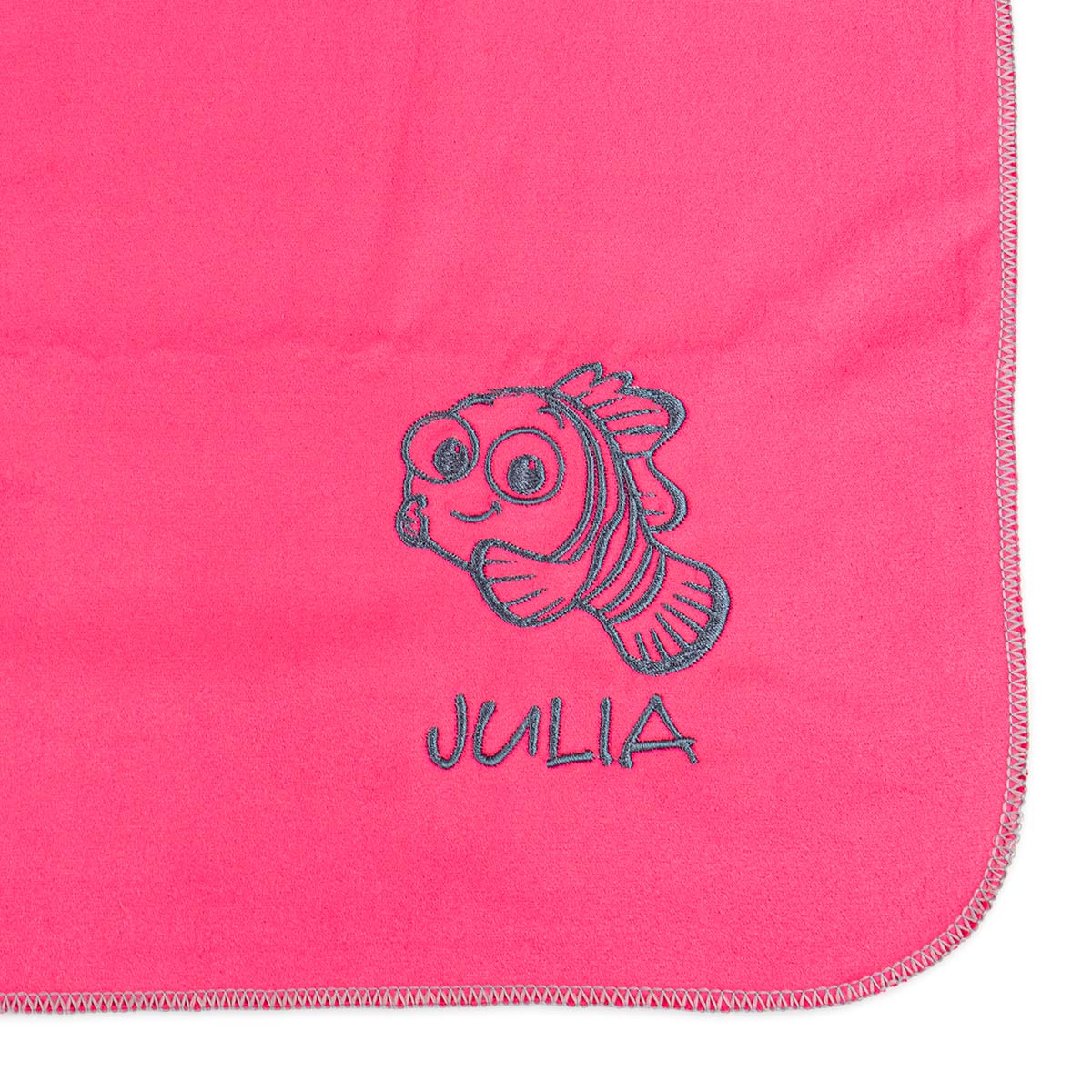 Na grafice podane są dwa przykładowe napisy Rybka Kasia i Pływaczka Kasia - ale wyhaftujemy dowolne dwa słowa, które najlepiej pasują do wybranej przez Ciebie osoby.