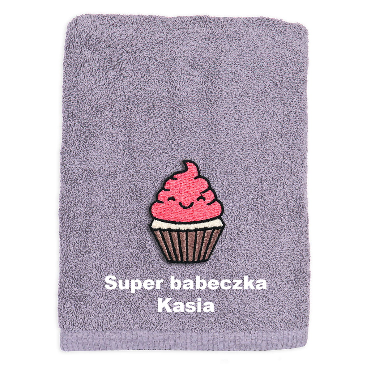 Prezent na Dzień Kobiet ręcznik bawełniany z haftem babeczka IMIĘ