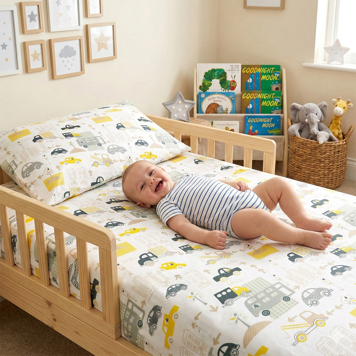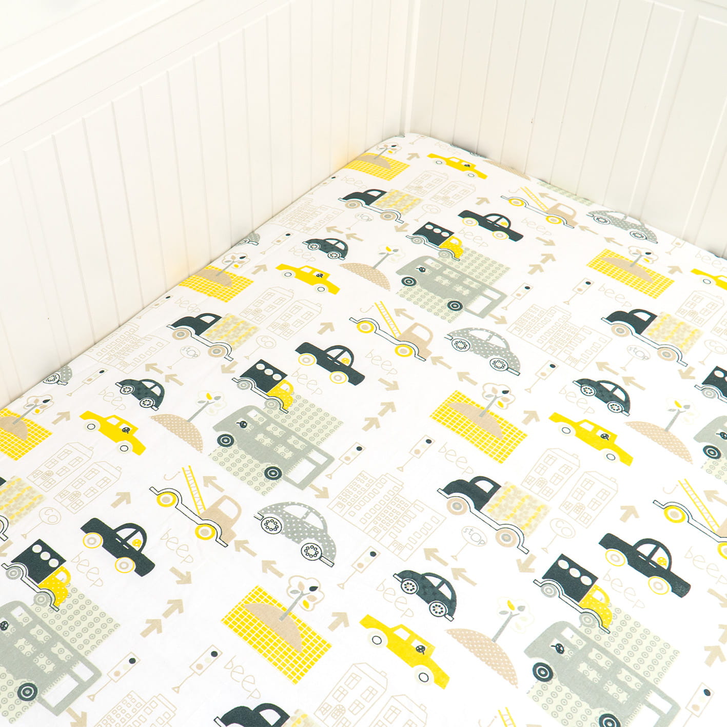 Prześcieradło z gumką auta beep żółte 80x160 cm