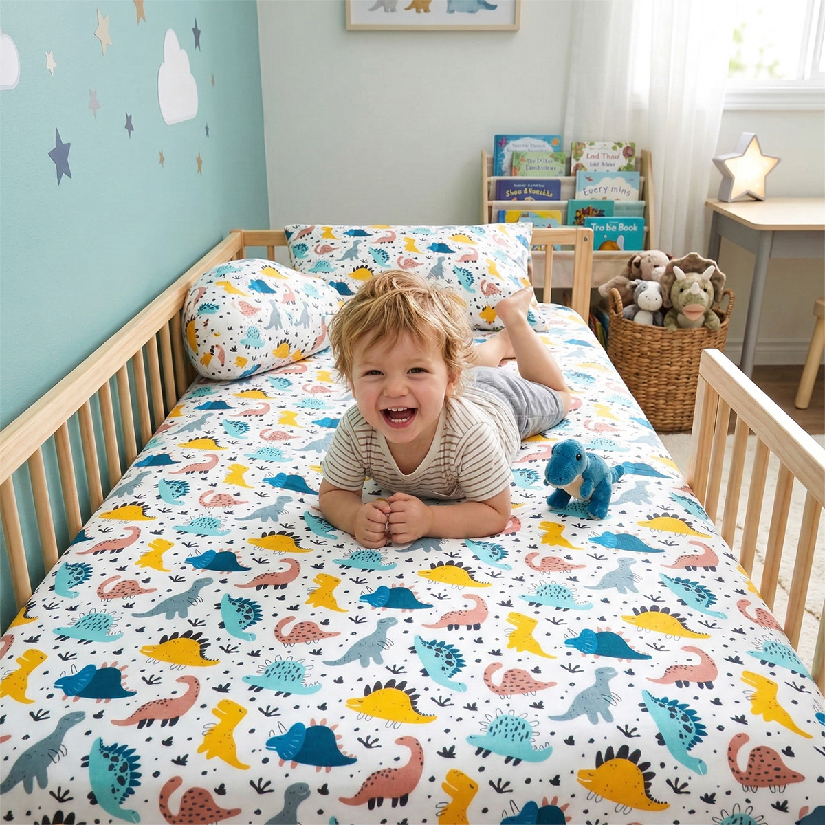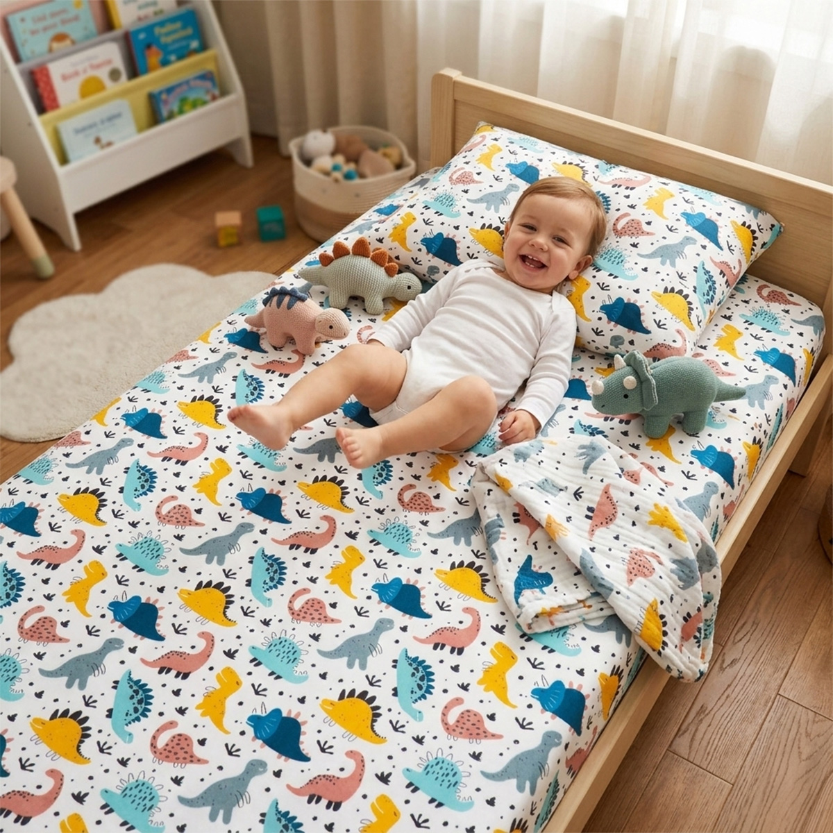 Prześcieradło z gumką dinozaury kolory 80x160 cm