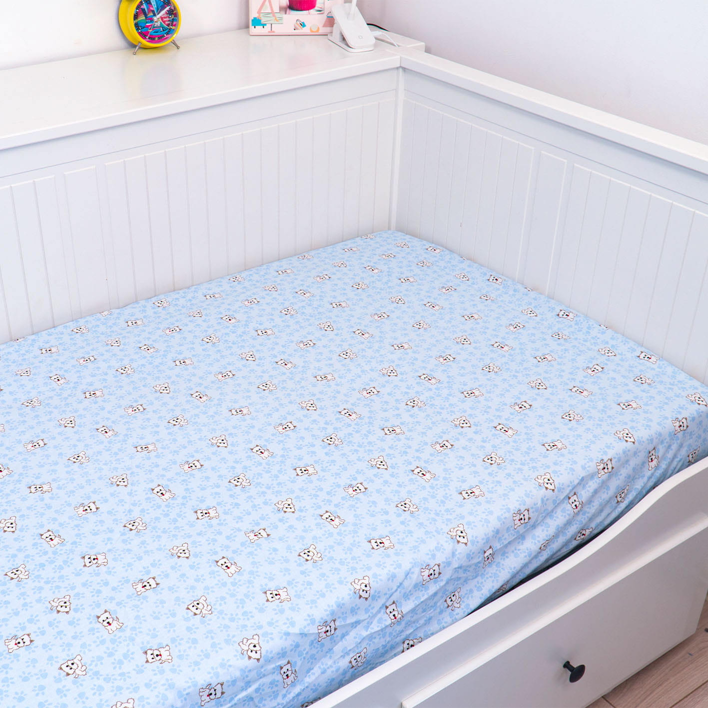 Prześcieradło z gumką łapki niebieskie 80x160 cm