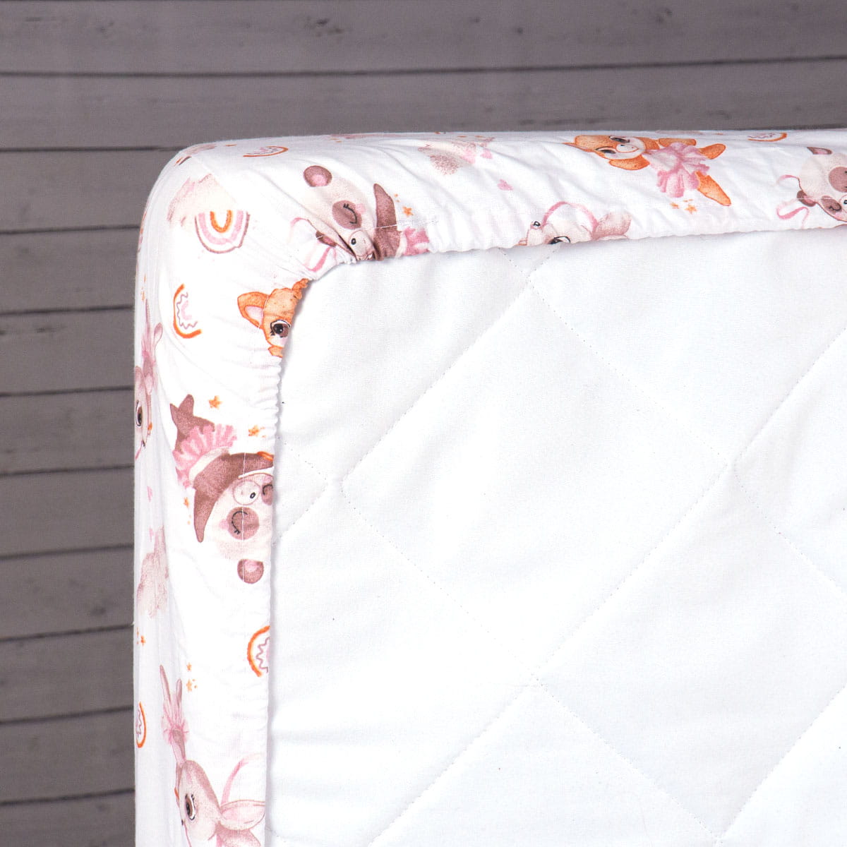Prześcieradło posiada wszytą na całym obwodzie solidną gumkę, która doskonale trzyma prześcieradło na materacu. Na każdym z 4 rogów znajduje się zaszyta zakładka około 15 cm, dzięki czemu prześcieradło idealnie pasuje na materace 80x160 cm, nie marszcząc się - nie powoduje miejsce, które mogą gnieść dziecko.