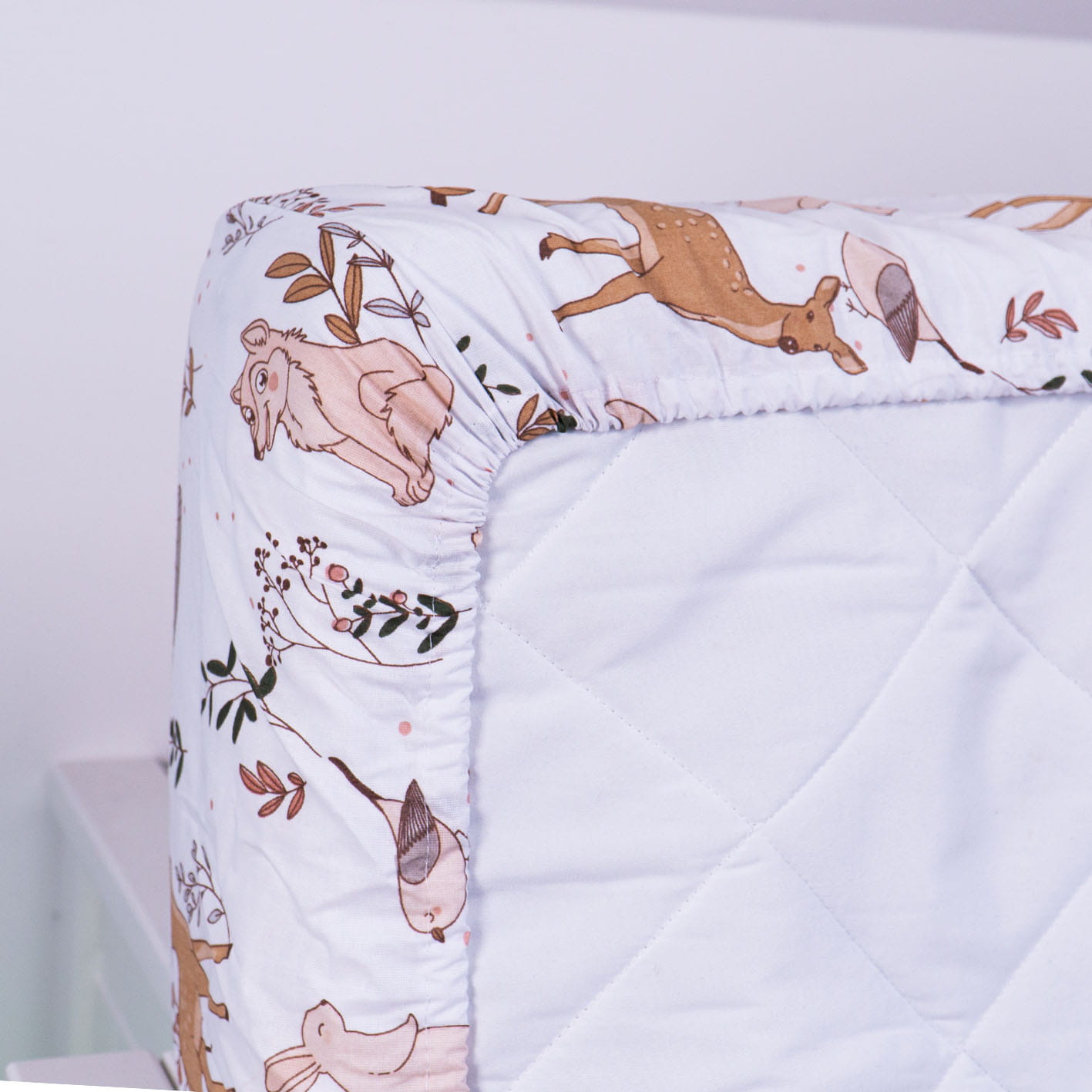 Prześcieradło posiada wszytą na całym obwodzie solidną gumkę, która doskonale trzyma prześcieradło na materacu. Na każdym z 4 rogów znajduje się zaszyta zakładka około 15 cm, dzięki czemu prześcieradło idealnie pasuje na materace 80x160 cm, nie marszcząc się - nie powoduje miejsce, które mogą gnieść dziecko.