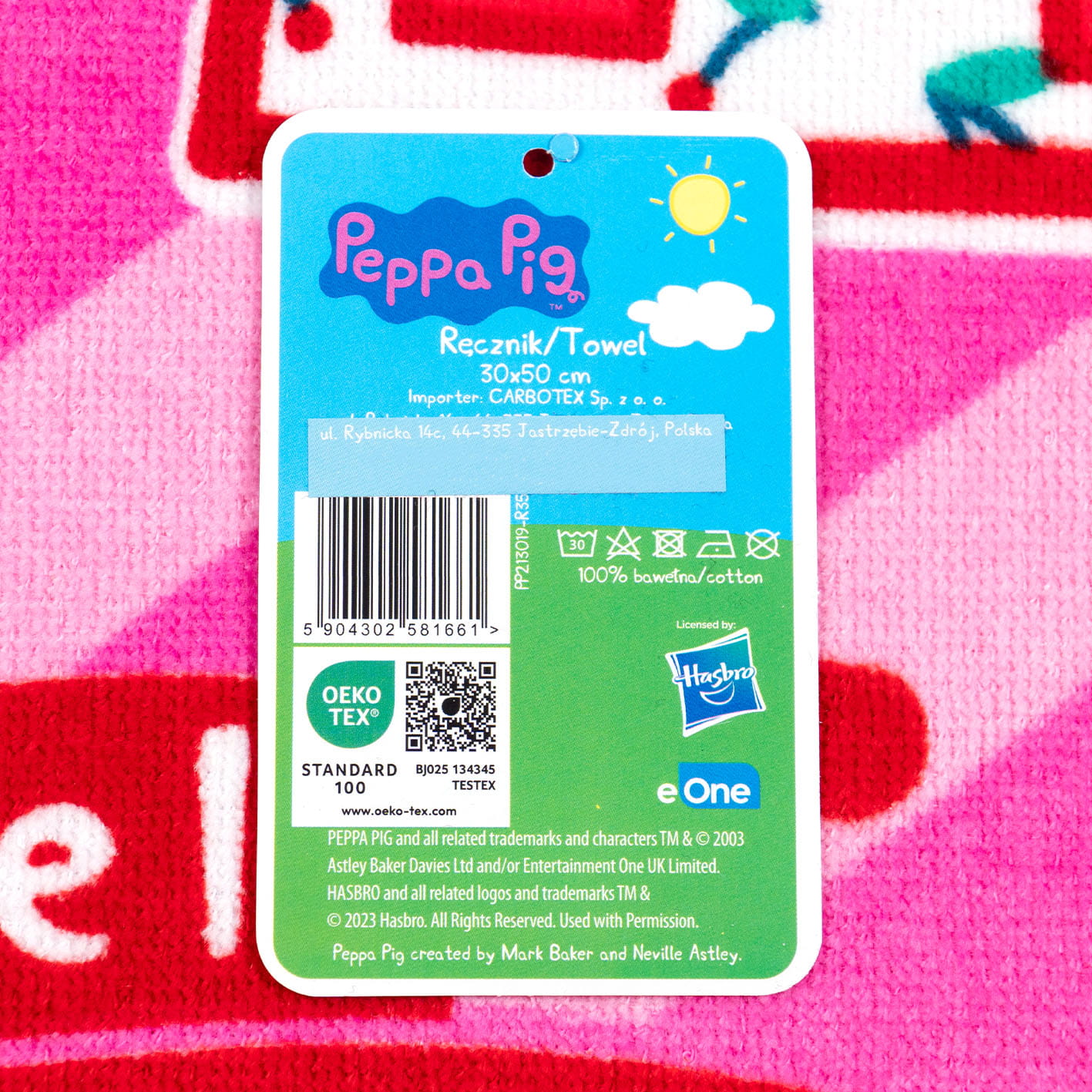 Nadruk na ręczniku posiada bardzo żywe, wyraźne kolory, jest bardzo trwały więc będzie służył dziecku przez długi okres czasu.