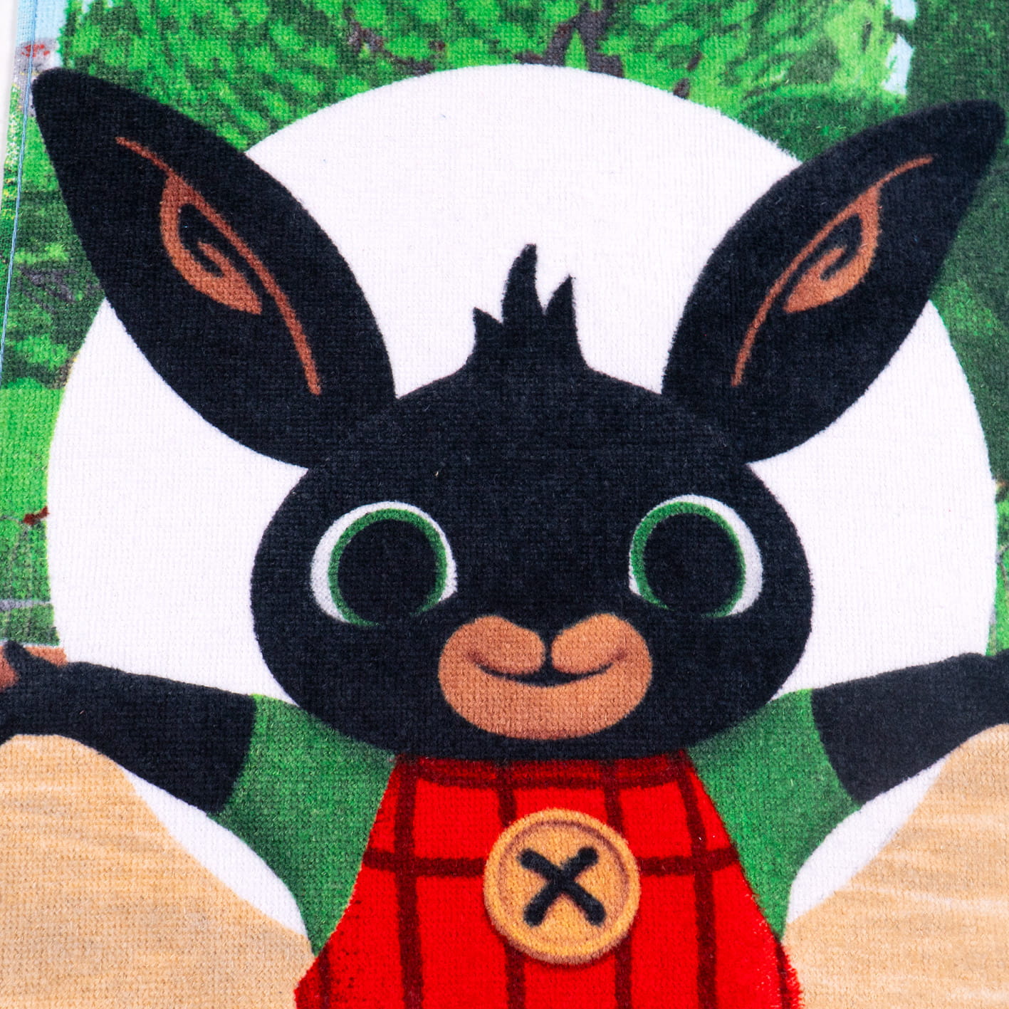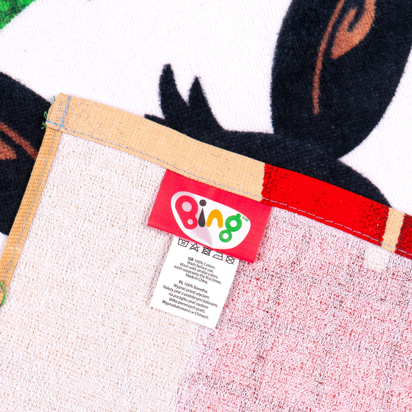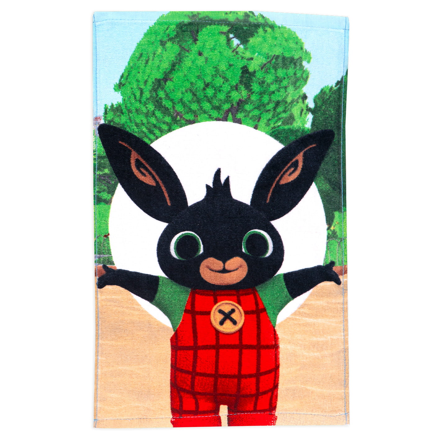 Odkryj uroczy ręcznik 30x50 cm z motywem z bajki Bing! Doskonały do łazienki i przedszkola, ozdobiony postacią Binga w parku. Wykonany z miękkiej i chłonnej bawełny, zapewniający komfort i radość podczas codziennego użytkowania. Idealny dla małych fanów przygód Binga!