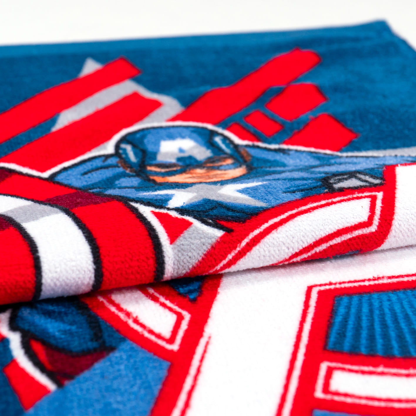 Odkryj ręcznik 30x50 cm z motywem Kapitana Ameryki z Avengers! Idealny do łazienki i przedszkola, wykonany z miękkiej i chłonnej bawełny. Twój mały superbohater pokocha ten wyjątkowy dodatek, który łączy funkcjonalność z ulubionym motywem z Marvela. Idealny na co dzień!