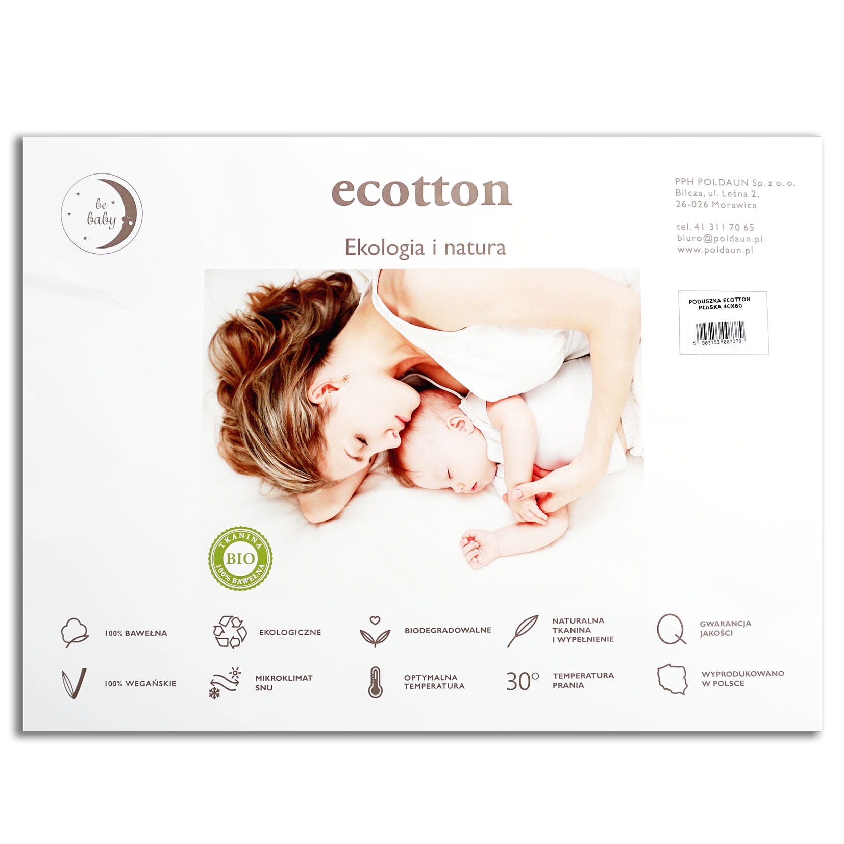 Płaska poduszka 100% bawełna w rozmiarze 40x60 cm ecotton.