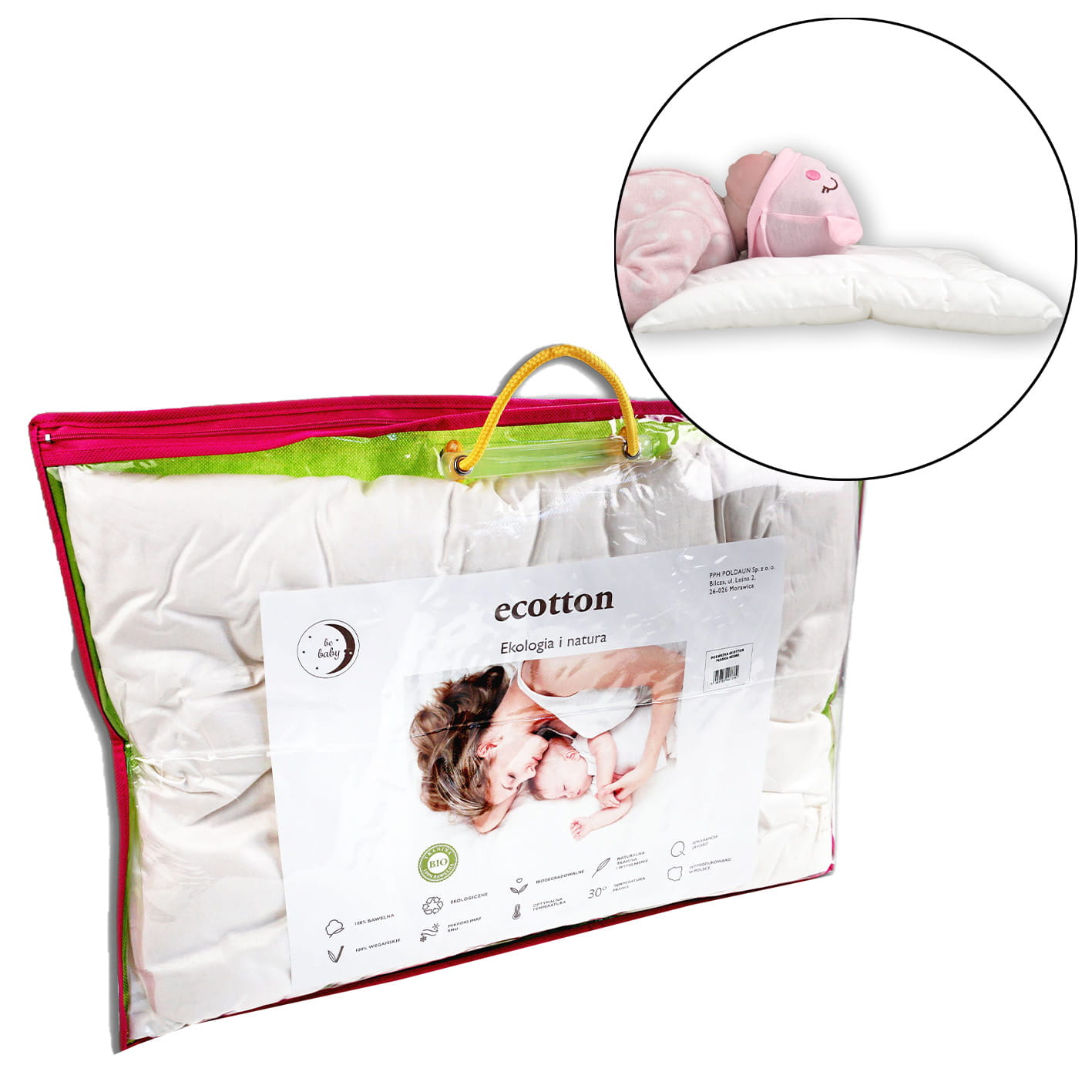 Małe dzieci mają problem z zasypianiem w obcym miejscu. Własna poduszka sprawia że obce łóżko staje się "bezpieczniejsze". To opakowanie na poduszkę pozwala na higieniczny jej transport i przechowywanie.