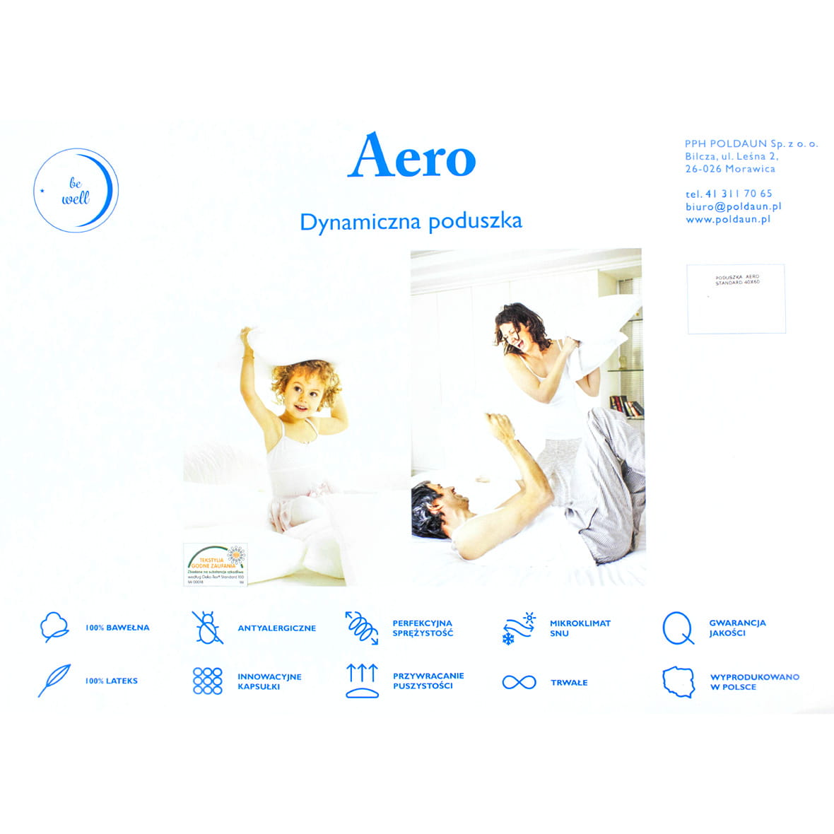 Poduszka aero cechuje się wyjątkową trwałością. Kapsułki lateksowe zapewniają wyjątkową sprężystość - doskonale stabilizują głowę i kark. Ten rodzaj wypełniania nie ubija się, poduszka zachowuje swój pierwotny kształt i właściwości nawet po długim okresie użytkowania.