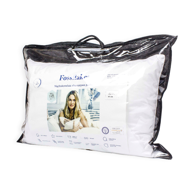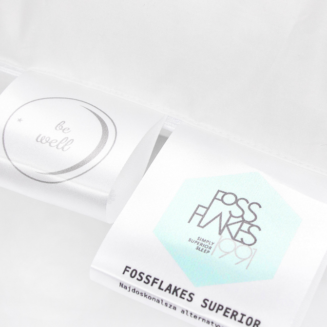 Wypełnienie Fossflakes zostało wynalezione i opatentowane w Danii. Innowacyjne, syntetyczne wypełnienie o strukturze porównywalnej do miękkich i delikatnych płatków śniegu, co czyni je doskonałą alternatywą puchu. Produkty Fossflakes mogą być prane tyle razy, ile jest to konieczne, aby utrzymać je w czystości, a ich kształt w żaden sposób nie ulega zmianie. Poduszki pozostają puszyste i sprężyste nawet po długim okresie użytkowania.