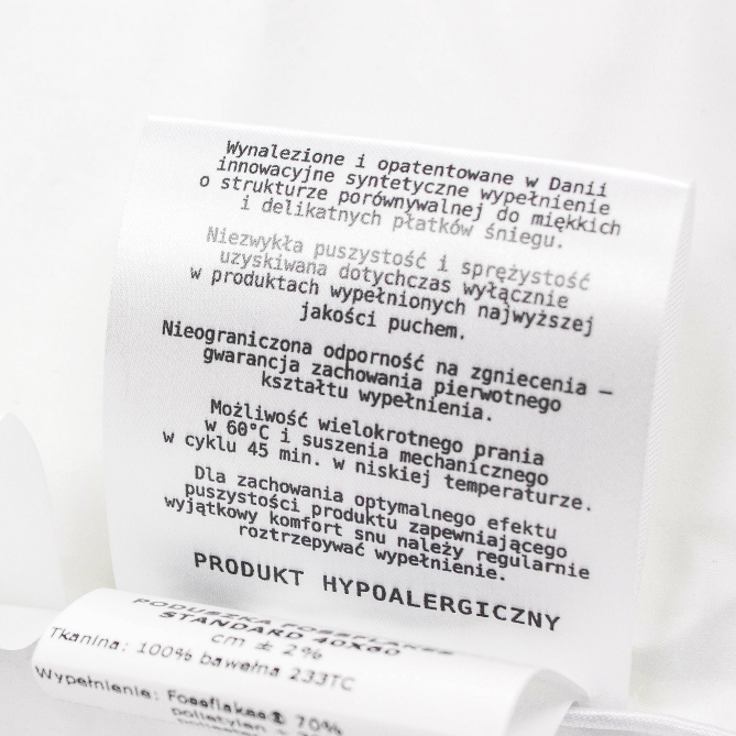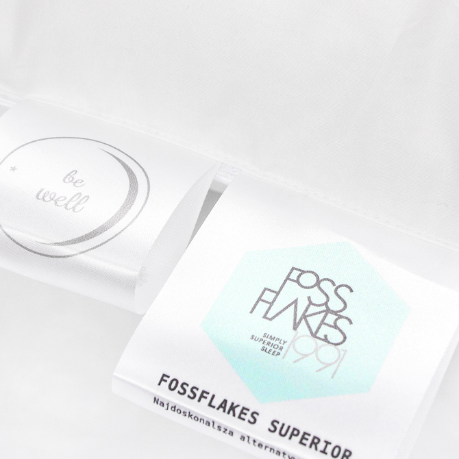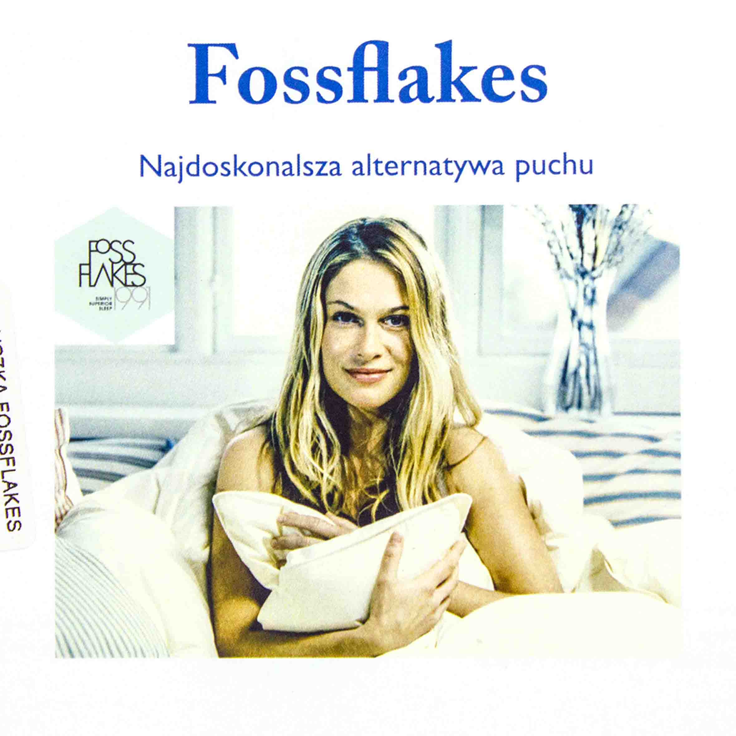 Wypełnienie Fossflakes zostało wynalezione i opatentowane w Danii. Innowacyjne, syntetyczne wypełnienie o strukturze porównywalnej do miękkich i delikatnych płatków śniegu, co czyni je doskonałą alternatywą puchu. Produkty Fossflakes mogą być prane tyle razy, ile jest to konieczne, aby utrzymać je w czystości, a ich kształt w żaden sposób nie ulega zmianie. Poduszki pozostają puszyste i sprężyste nawet po długim okresie użytkowania.
