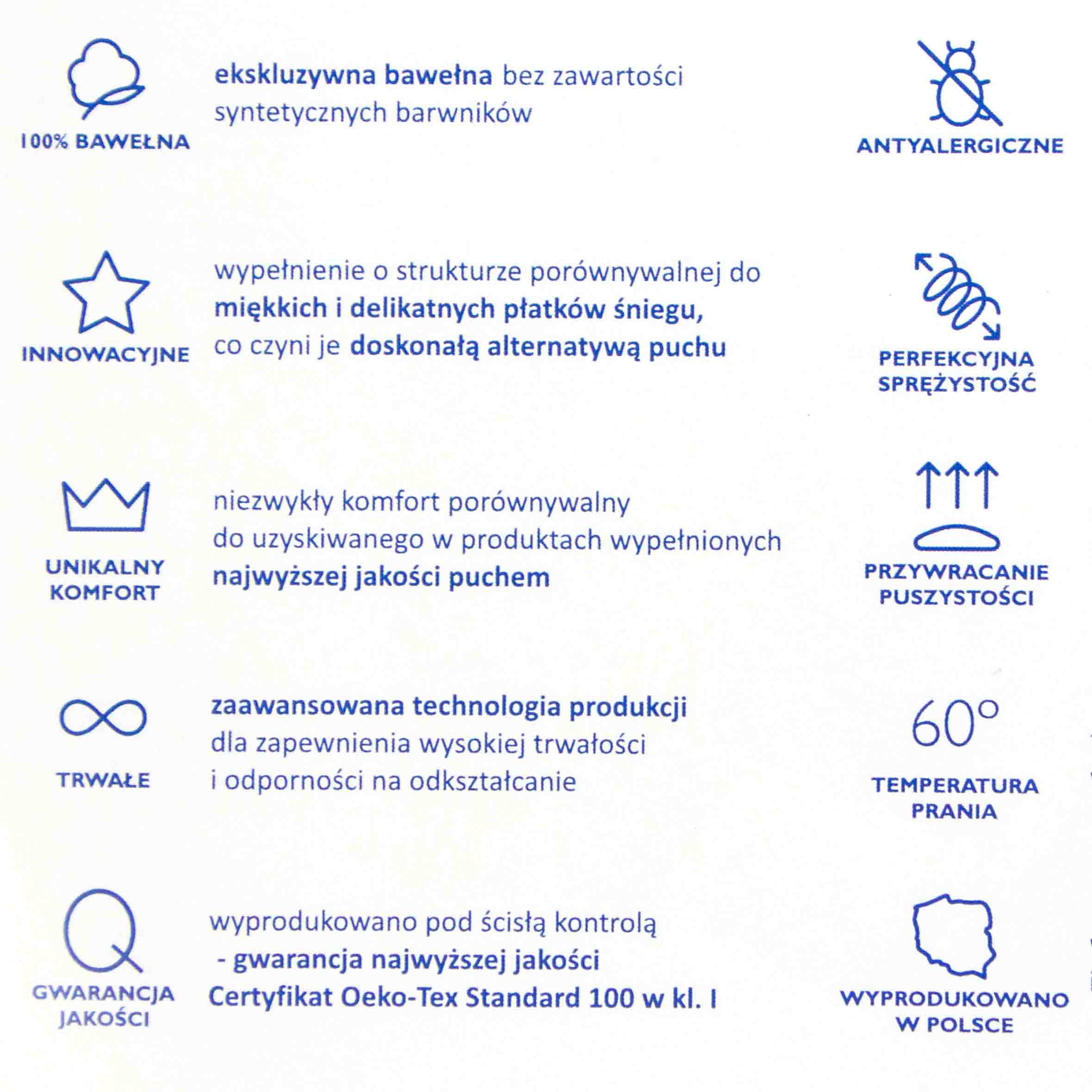 Wypełnienie: Fossflakes Superior (70% polietylen, 30% poliester) - sztuczny puch