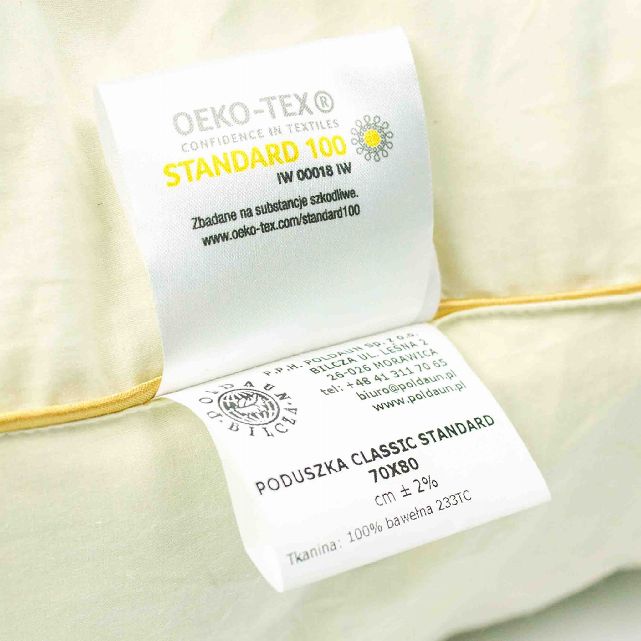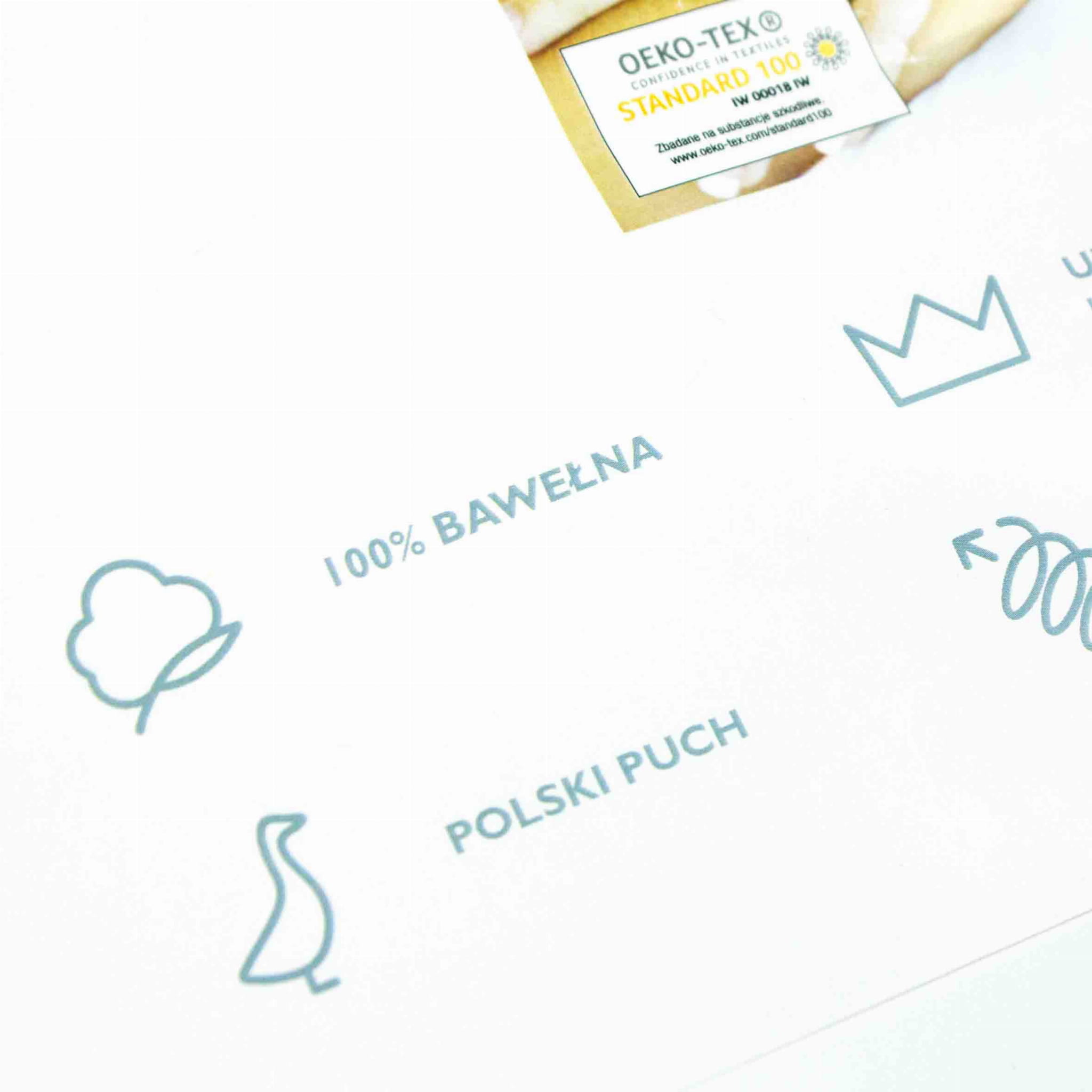 Poduszka puchowa posiada Certyfikat Tekstylia Godne Zaufania - co daje pewność bezpieczeństwa i najwyższej jakości.