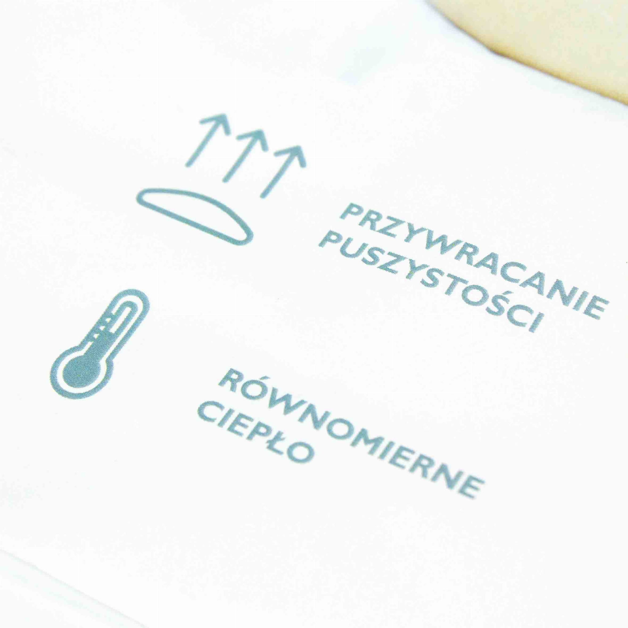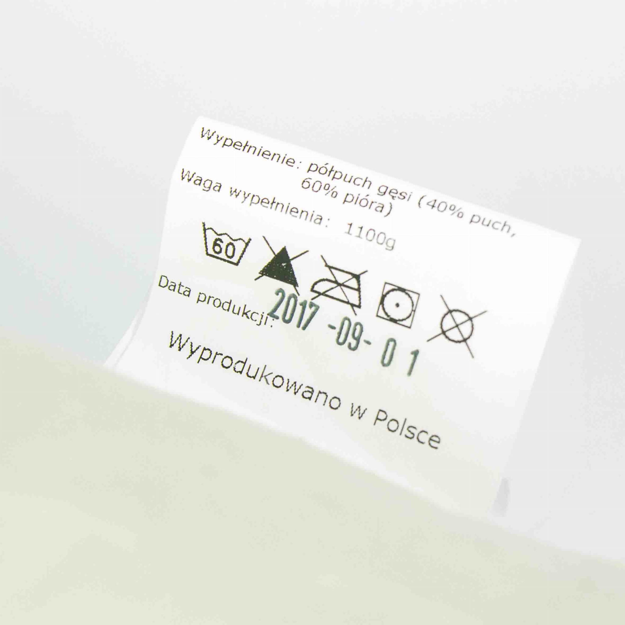 - Wypełnienie: półpuch gęsi 40% (40% puch, 60% piórka)