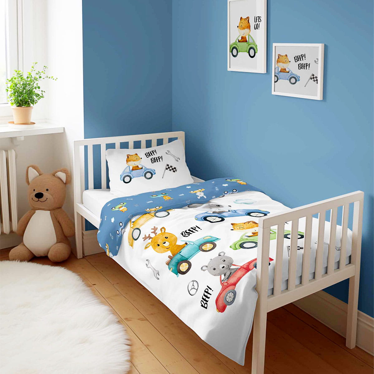 Pościel 90x120 cm zwierzęta beep niebieskie