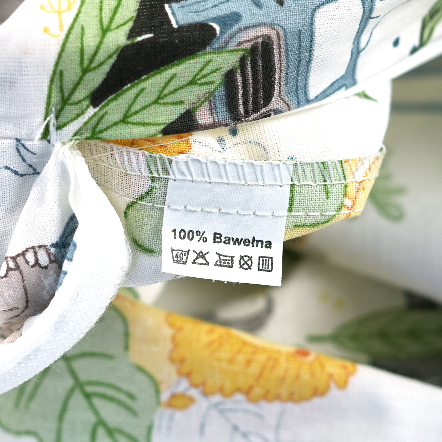 Pościel została uszyta z tkaniny 100% bawełna, bez żadnych sztucznych domieszek poliestrowych. Naturalne właściwości bawełny zapewniają doskonałą wentylację, co ogranicza pocenie się dziecka.