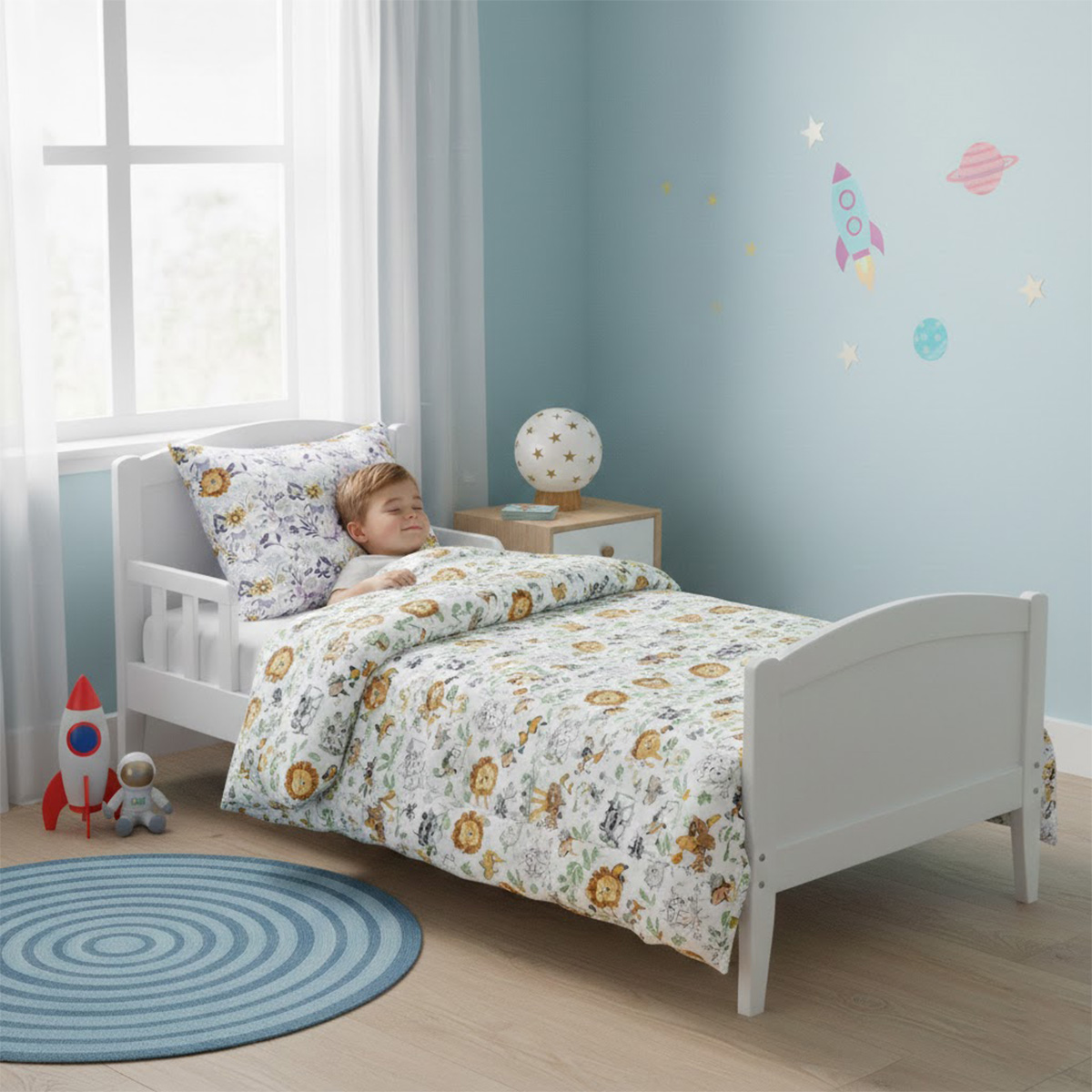 Pościel posiada żywy, bardzo trwały nadruk, który ożywi każde wnętrze dziecięcego pokoju.