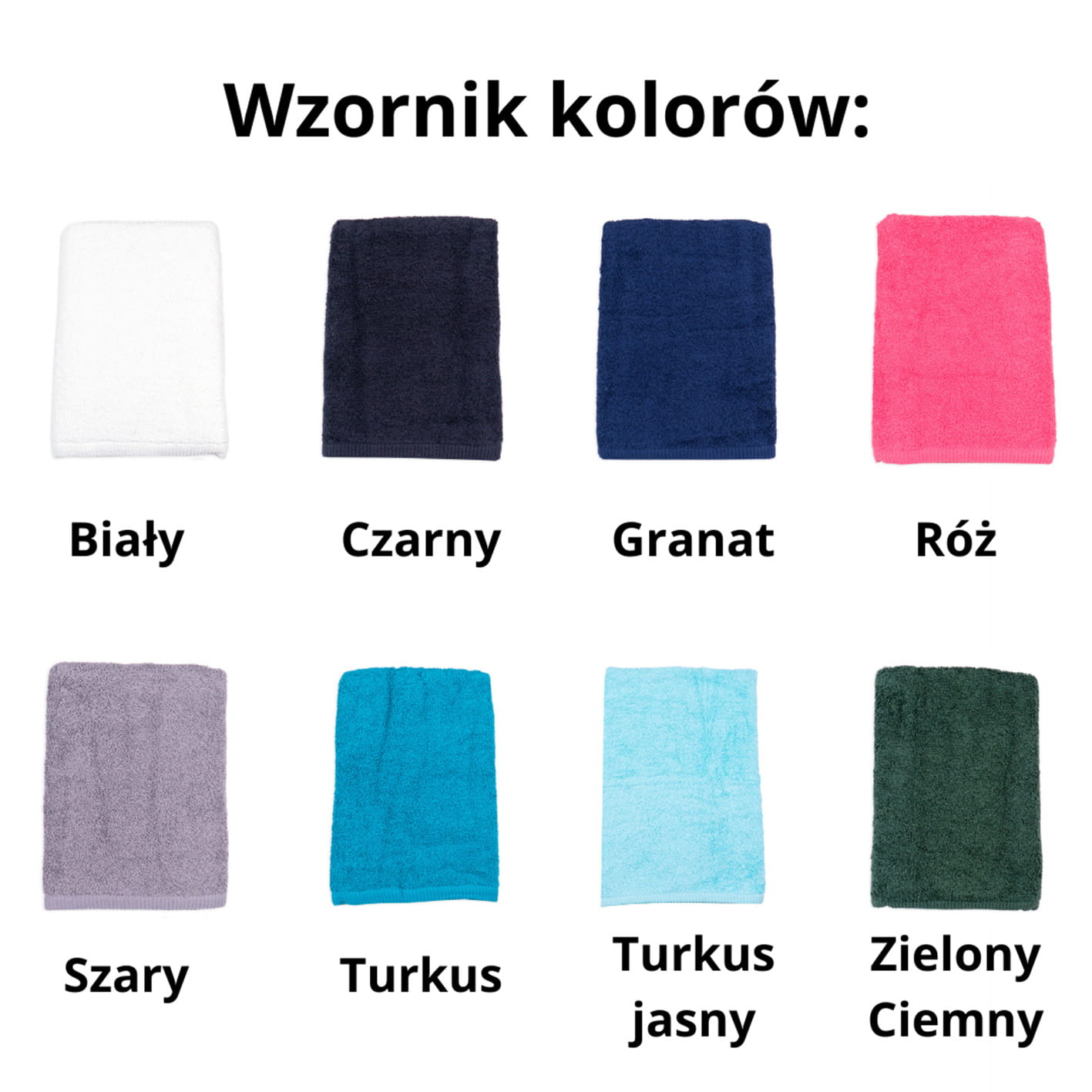 Na ręczniku pod grafiką możemy wyhaftować imię lub inne dwa słowa - od Ciebie zależy jaki tekst haftu będzie najlepszy :)