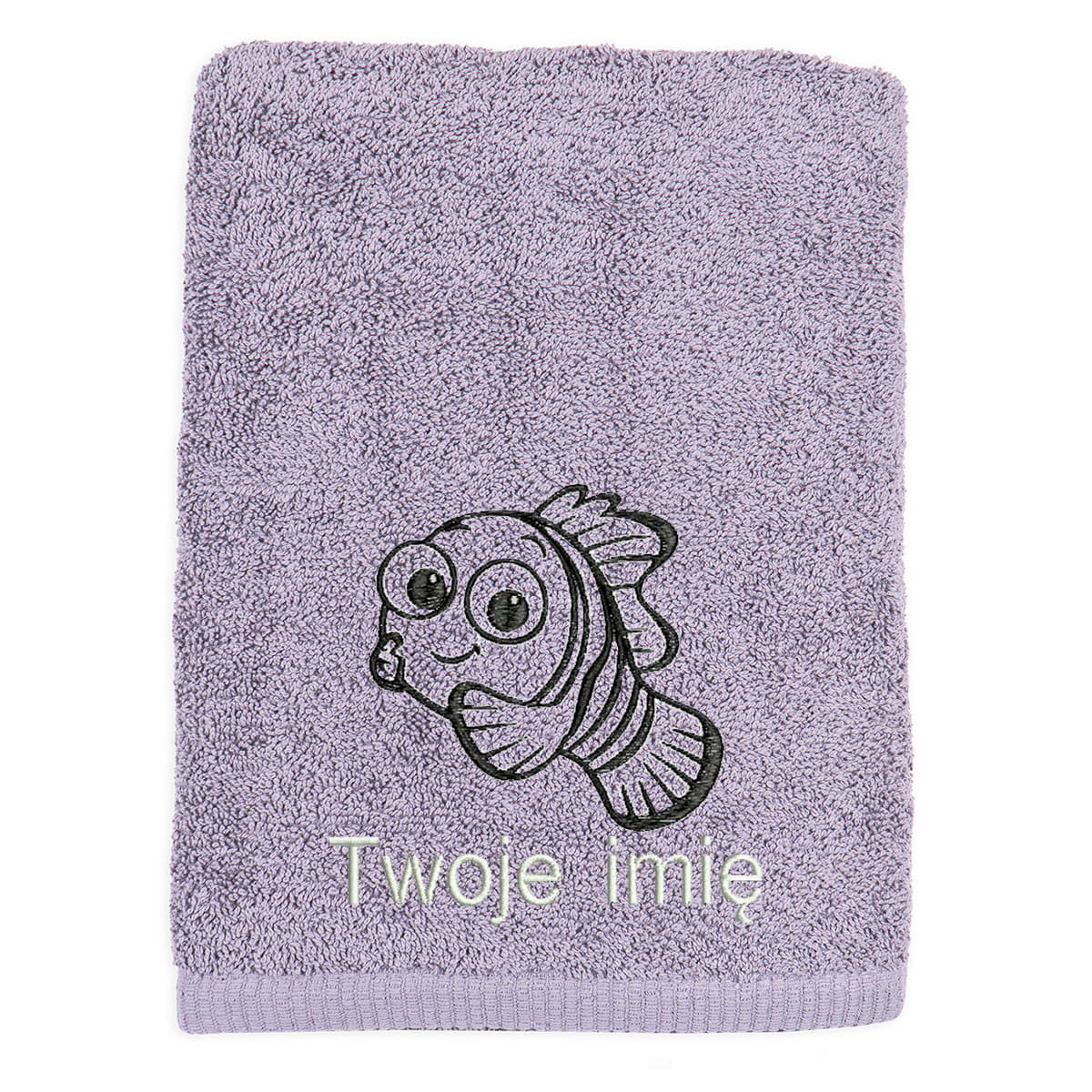 Personalizowany ręcznik bawełniany o doskonałej chłonności, z haftem przedstawiającym motyw słodkiej rybki i Twoim imieniem. Idealny prezent dla młodego miłośnika pływania, zapewniający komfort i osobisty akcent.