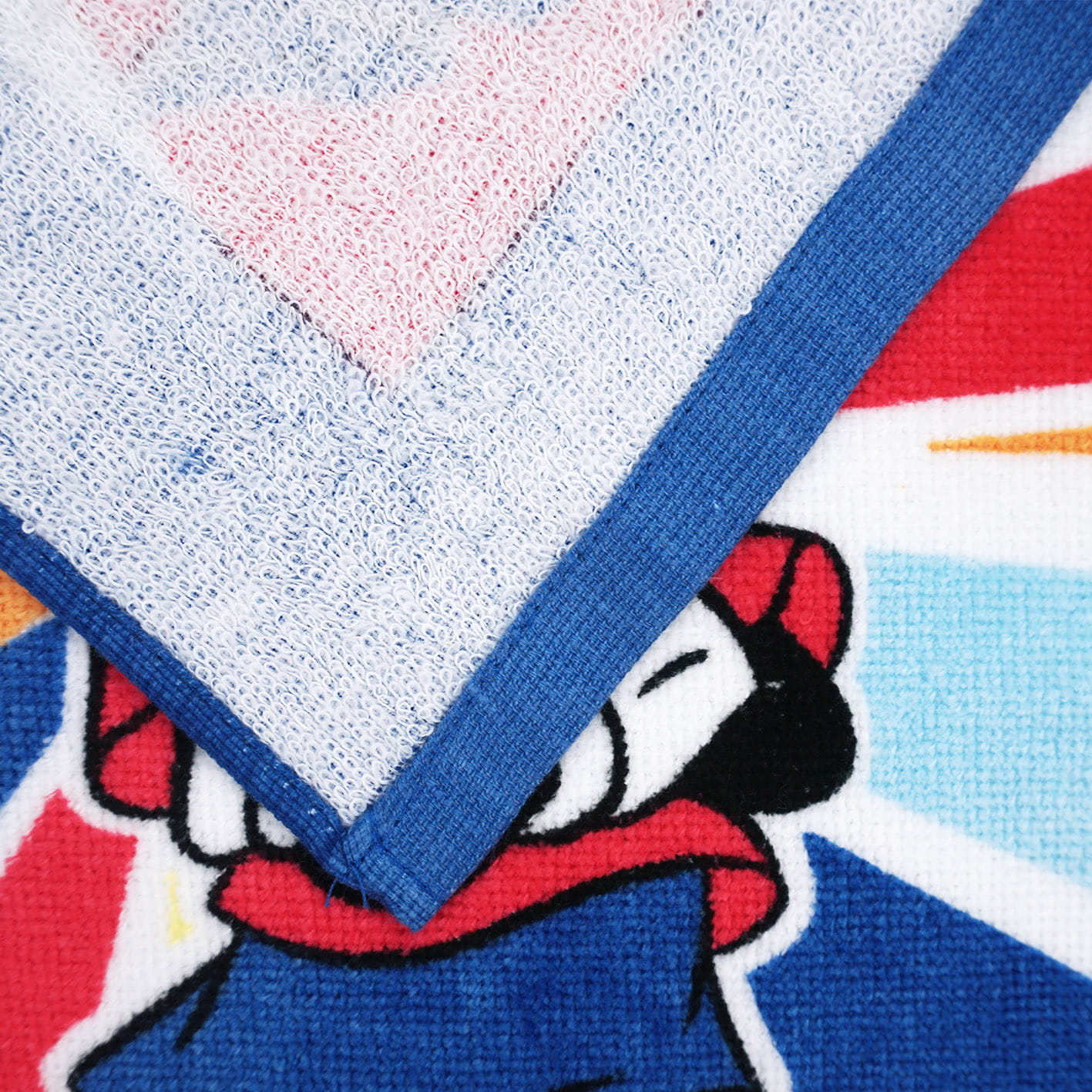 Ręcznik jest starannie obszyty na całym obwodzie - nie będzie się strzępił. Nadruk na ręczniku znajduje się po jednej stronie, po drugiej jest gładki, biały splot bawełny.