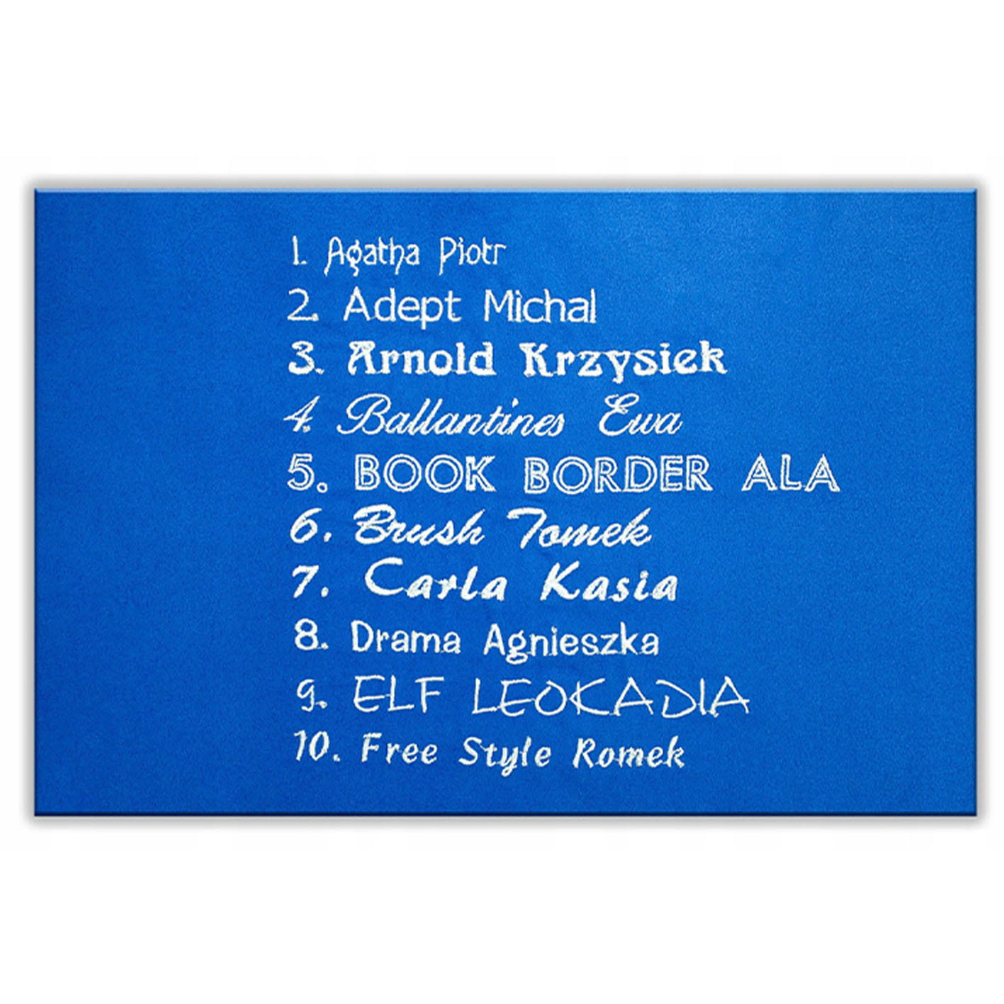 Na ręczniku wykonujemy haft wysokości 10 cm, sam wybierz kolor haftu i model czcionki.