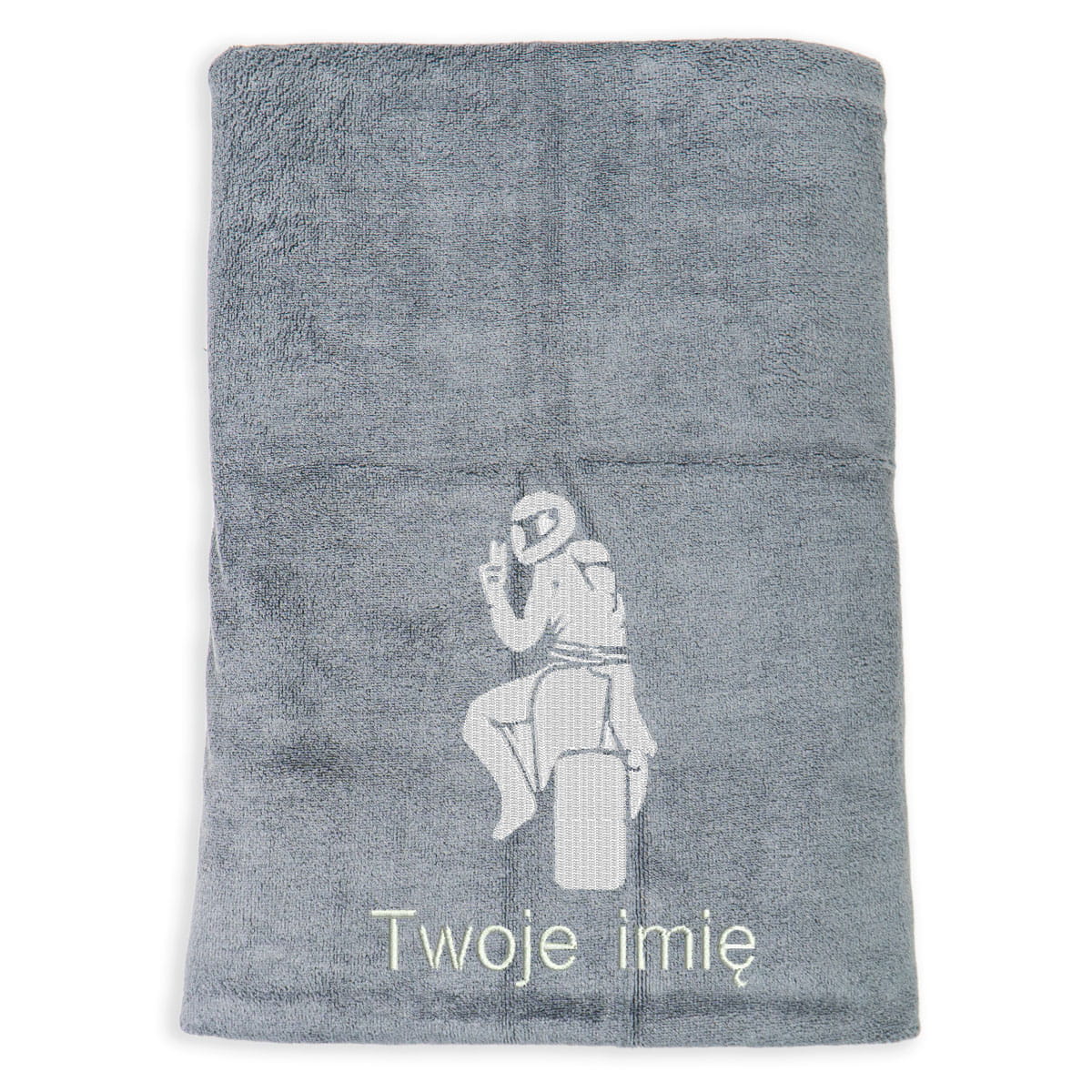 Na ręczniku pod grafiką możemy wyhaftować imię lub inne dwa słowa - od Ciebie zależy jaki tekst haftu będzie najlepszy :)