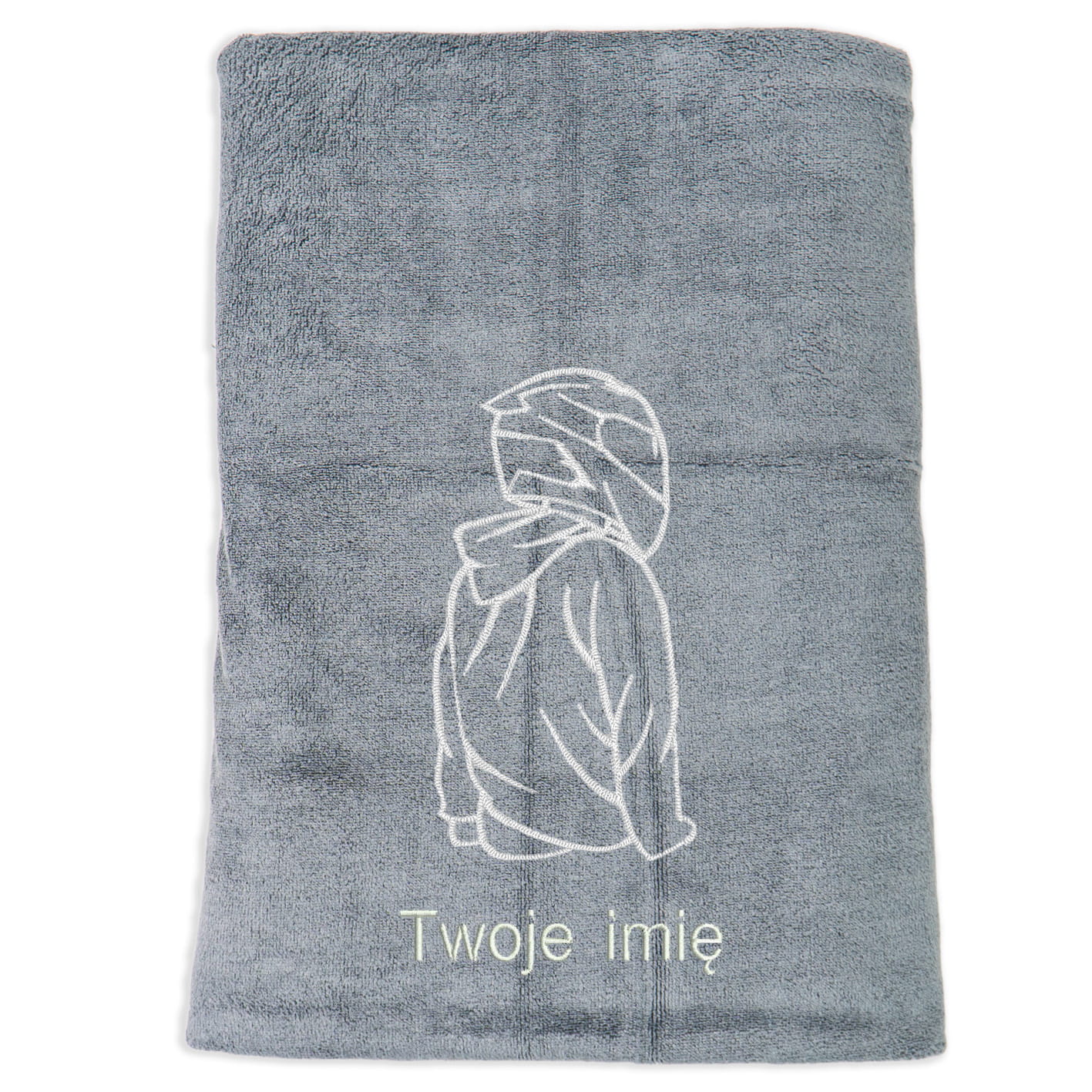 Na ręczniku wykonujemy haft wysokości 10 cm, sam wybierz kolor haftu i model czcionki.
