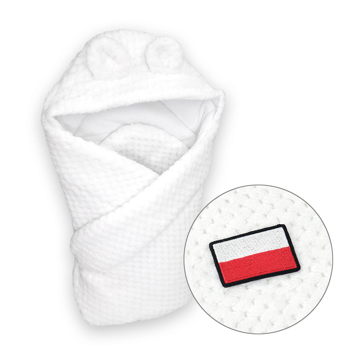 Rożek z kapturkiem SOFT biały 80x75 cm